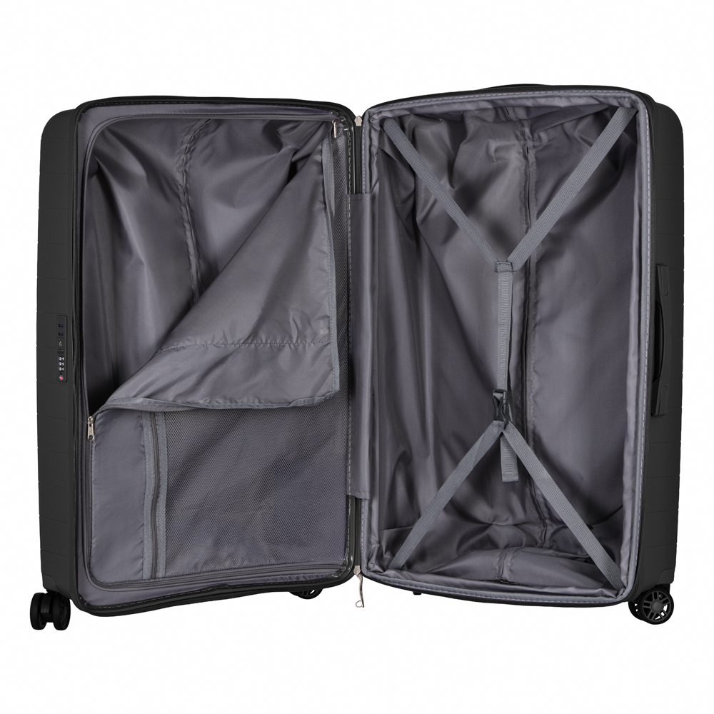 Жесткий корпус изготовлен из 100 процентов полипропилена, что обеспечивает чрезвычайную прочность при минимальном весе. Внутри чемоданов предусмотрены разделители и регулируемые упаковочные пояса для надежной фиксации вещей, это организует и упорядочивает поклажу, и таким образом обеспечивается высокий уровень комфорта и безопасности, что сделает путешествие беззаботным. Встроенный кодовый замок TSA надежно защитит багаж и упростит прохождение таможнного контроля. Благодаря легким двойным колесам-спиннерам можно без труда двигаться в любом направлении, а выдвижная телескопическая ручка из алюминия обеспечивает оптимальную настройку высоты в нескольких промежуточных положениях. Система расширения позволяет увеличить объем чемодана, что добавляет удобства в длительных путешествиях или поможет разместить дополнительные вещи или покупки, приобретенные во время путешествия.