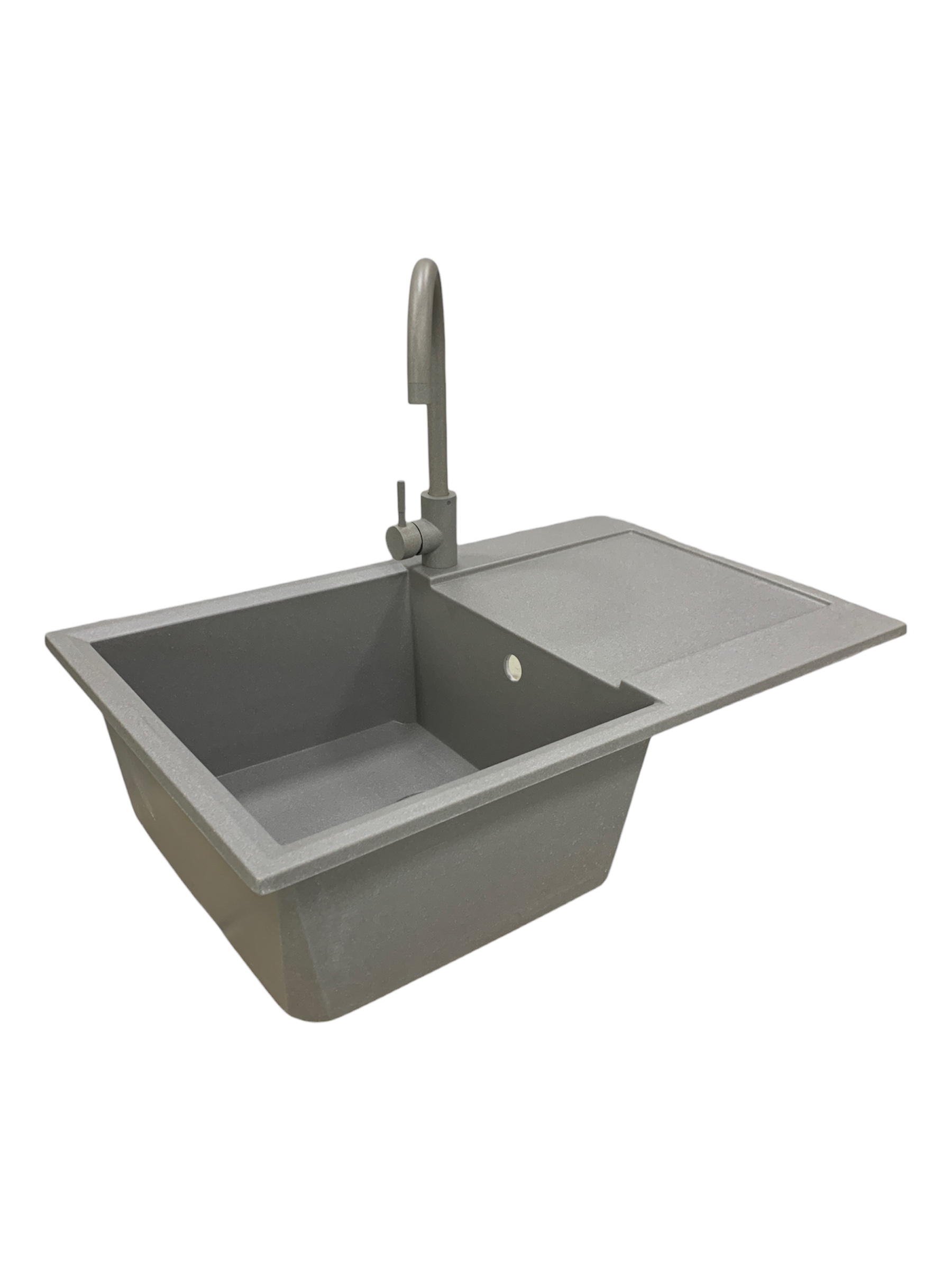 Adamant Набор Horizon – практичное решение для кухни, которое включает прочную мойку из искусственного камня и смеситель с поворотным изливом. Мойка отличается высокой стойкостью к бытовым нагрузкам и выдерживает температуру до 280C, что позволяет безопасно ставить горячую посуду, не беспокоясь о повреждении поверхности. Ее непористая структура не впитывает загрязнение и легко очищается, сохраняя первоначальный вид на долгие годы.