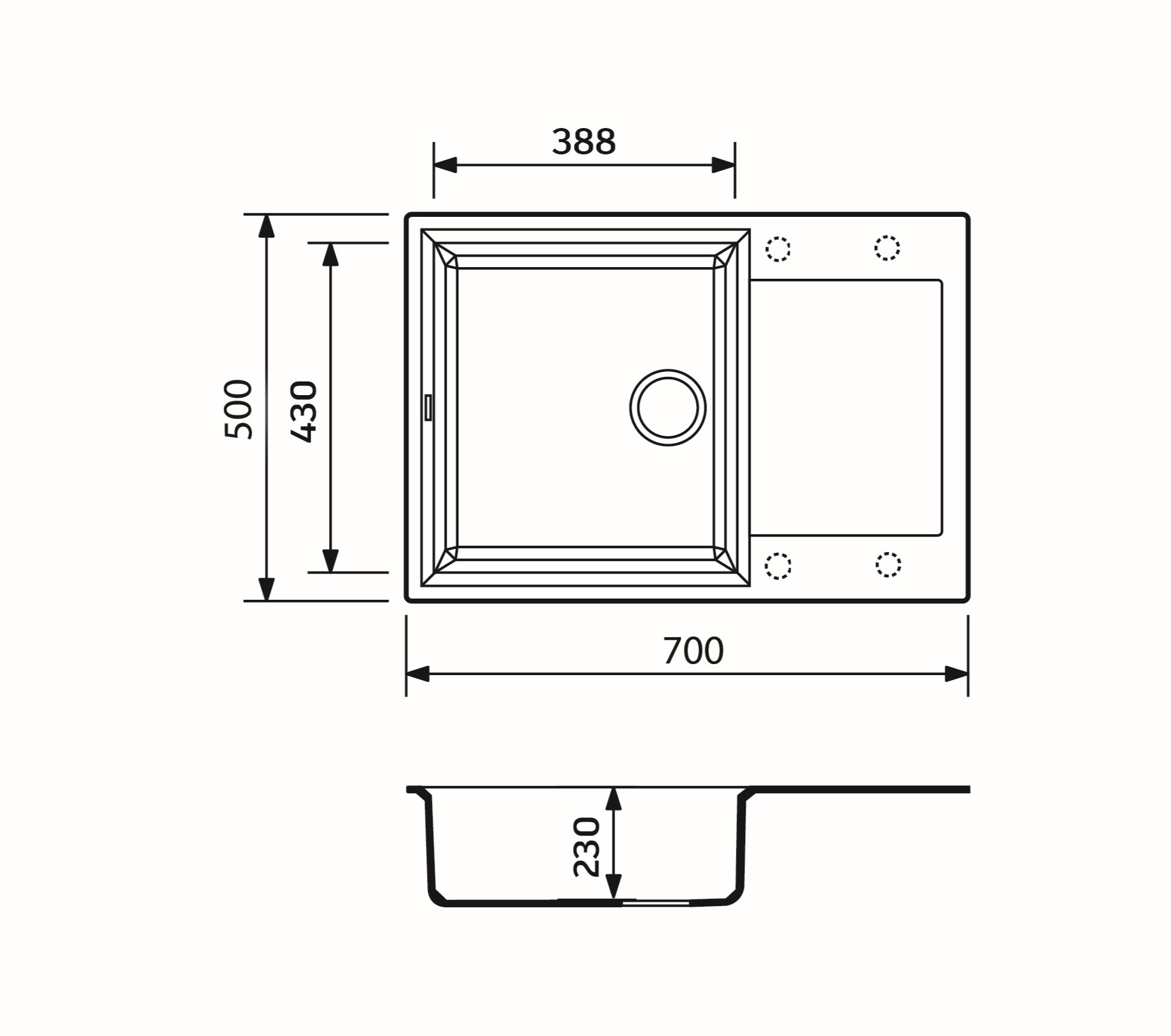 Мойка имеет продуманный дизайн для повседневного использования: эргономичная чаша и рабочая зона обеспечивают удобство мытья посуды и приготовления пищи. Смеситель с поворотным изливом на 360 градусов дает гибкость в использовании – удобно заполнять большие кастрюли, мыть объемную посуду или изменять направление воды без ограничений.