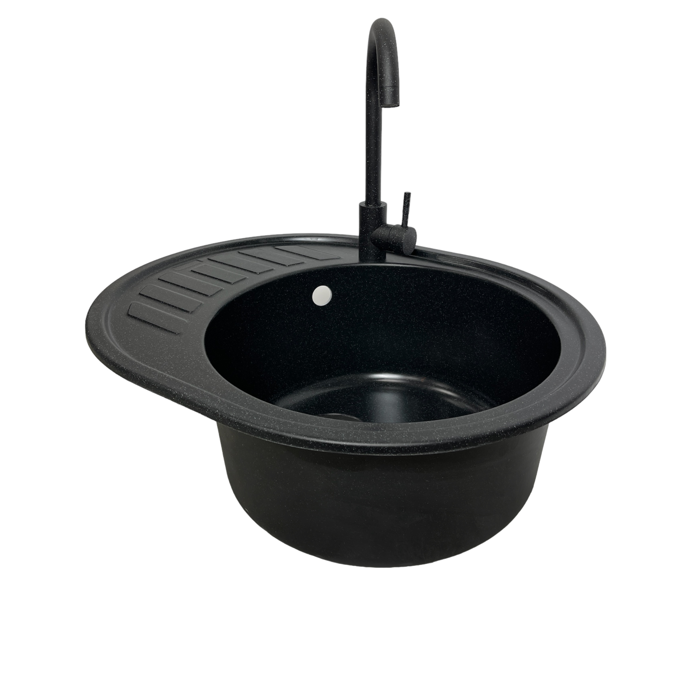 Adamant Ovum — полноценный кухонный набор, включающий врезную овальную мойку из искусственного камня, смеситель в тон мойки, дозатор моющего средства и сифоновую систему. Мойка выполнена по технологии Solid Surface – это означает, что она имеет высокую прочность, стойкость к перепадам температур, царапинам и ежедневной нагрузке. Овальная чаша и большое крыло делают рабочую зону максимально удобной: удобно мыть посуду, обрабатывать продукты или сушить посуду после мытья, не занимая лишнего места на столешнице.