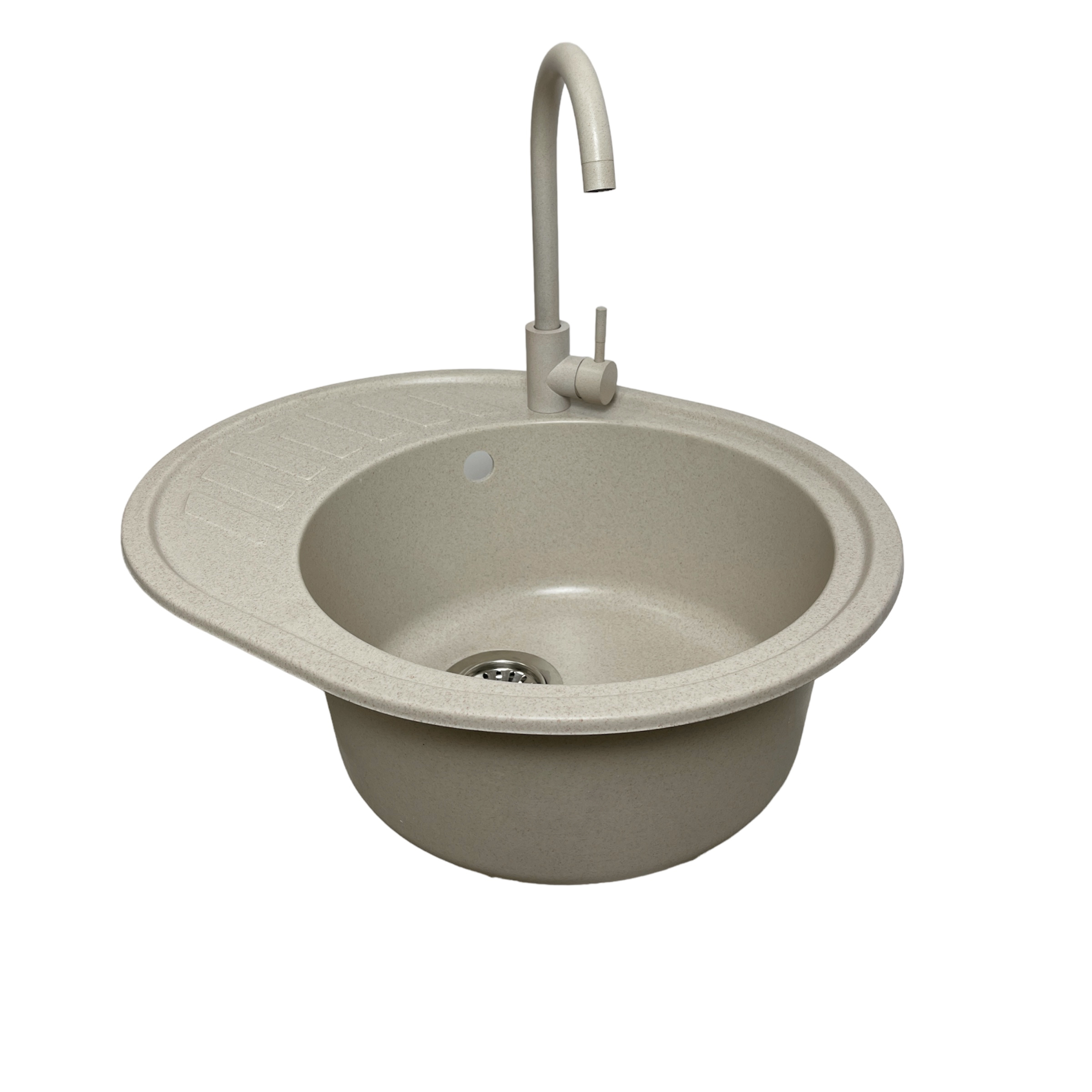 Adamant Ovum — полноценный кухонный набор, включающий врезную овальную мойку из искусственного камня, смеситель в тон мойки, дозатор моющего средства и сифоновую систему. Мойка выполнена по технологии Solid Surface – это означает, что она имеет высокую прочность, стойкость к перепадам температур, царапинам и ежедневной нагрузке. Овальная чаша и большое крыло делают рабочую зону максимально удобной: удобно мыть посуду, обрабатывать продукты или сушить посуду после мытья, не занимая лишнего места на столешнице.