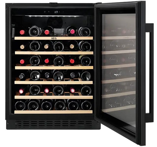 AEG AWS4052B5B – это встроенный винный шкаф премиального уровня, предназначенный для правильного хранения вина в домашних условиях. Модель сочетает элегантный дизайн с черными стеклами, продуманную эргономику и технологии, воспроизводящие условия профессионального винного погреба. Полезный объем позволяет разместить до 52 бутылок вина, что делает модель идеальной как для начальной коллекции, так и регулярного использования. Внутреннее пространство организовано с помощью деревянных полок, которые не только выглядят премиально, но и уменьшают вибрацию, обеспечивая правильное хранение напитка.