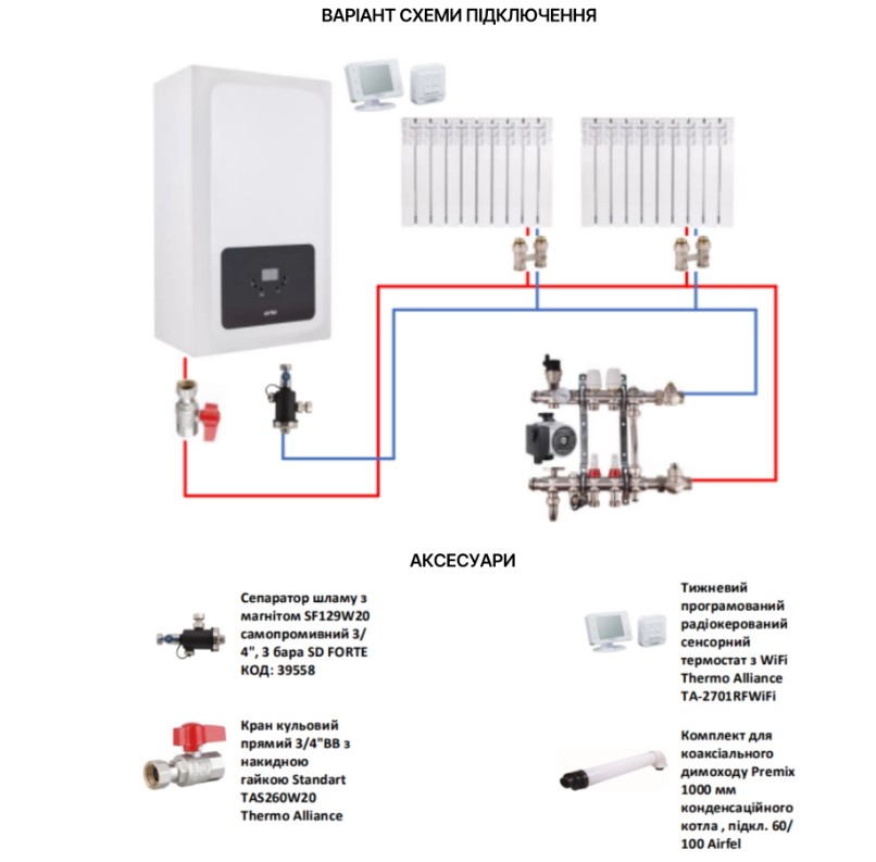 Конденсационный котел Optimum Premix 30 кВт надежного и безопасного бренда Airfel в соответствии с высокими требованиями регламентов ErP и является экологически чистым продуктом, который бережно относится к окружающей среде, благодаря классу Nox 6 и обеспечивает высокий КПД и экономию за счет полной модуляции пламени и наноса с управляемой частотой.