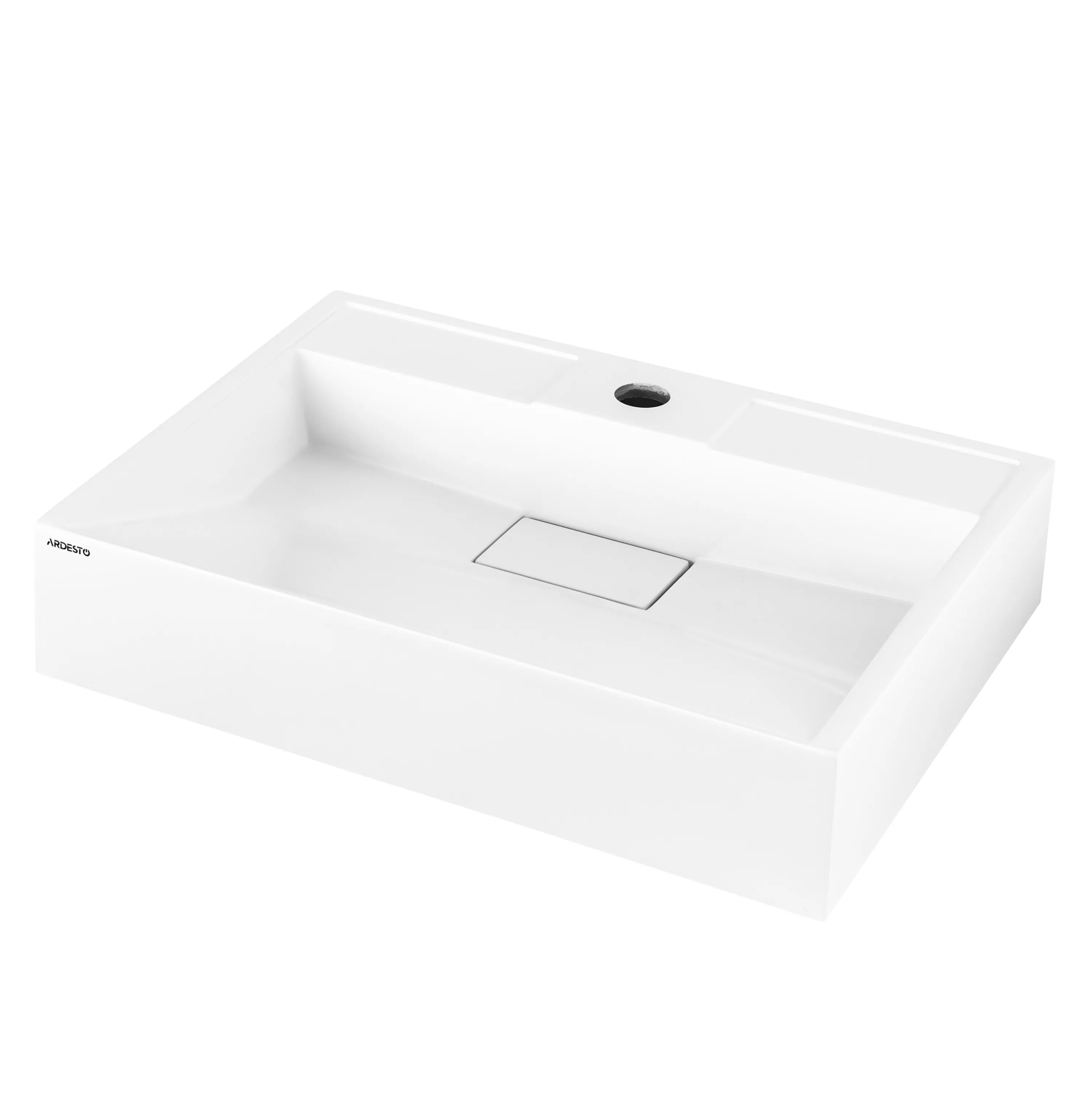 Раковина прямоугольной формы с четкими очертаниями будет гармонично подходить к современным интерьерам. Уход за раковиной из искусственного камня достаточно прост: для очищения достаточно мягкой губкой, увлажненной мыльной водой, обработать поверхность.