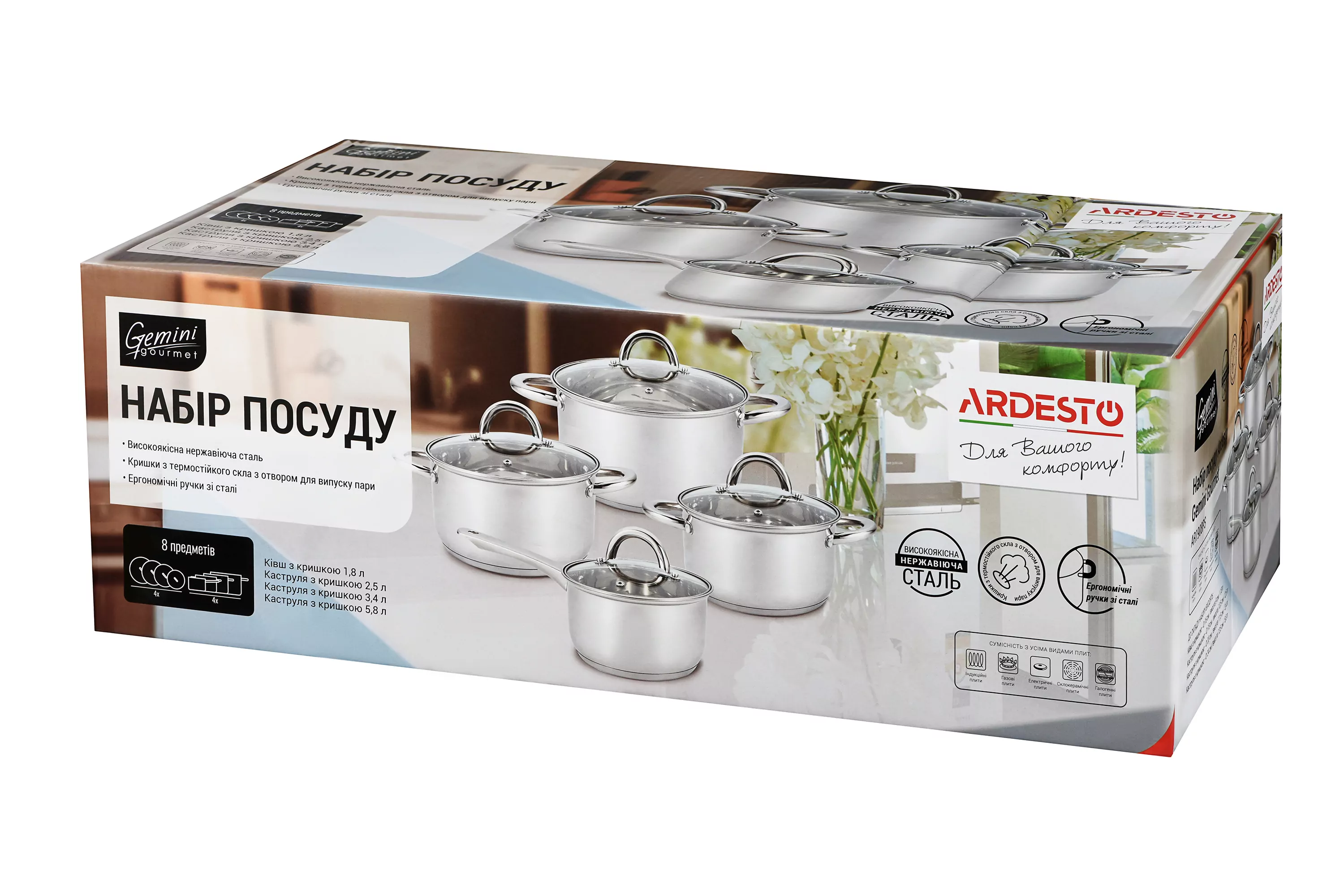 Ardesto AR1908PS Gemini Gourmet Andria – это практичный расширенный набор посуды, закрывающий все базовые потребности кухни – от приготовления небольших блюд до объемных семейных порций. Выполненный из нержавеющей стали, он сочетает сдержанный современный вид с долговечностью, что делает его универсальным решением для повседневного использования.