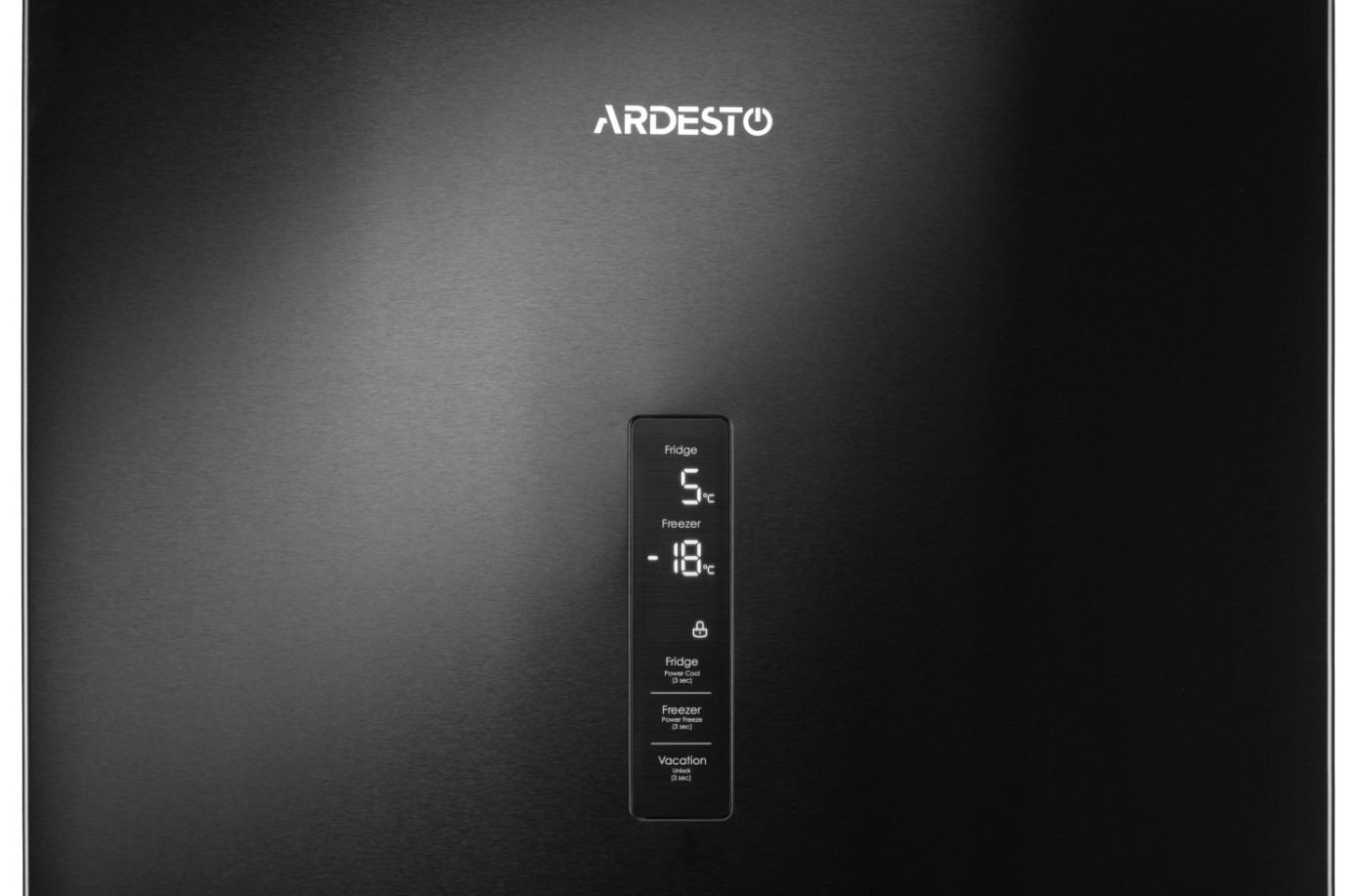 Не нужно заглядывать внутрь холодильника и выпускать драгоценный холод, чтобы узнать, что там происходит. Для этого на двери холодильника размещен внешний цифровой дисплей, показывающий температуру холодильной и морозильной камер, используются ли функции быстрого охлаждения и замораживания и тому подобное. Да и управлять функциями холодильника можно через сенсорные кнопки, размещенные на дисплее.