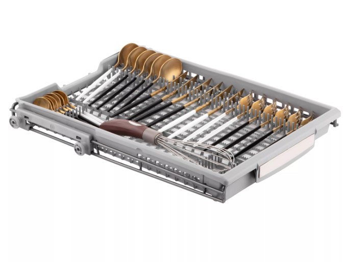 | Оснащение | третья корзина, съемная корзина для столовых приборов, цельные раскладные полки в нижней корзине, цельные раскладные полки в верхней корзине, 2 полки для кружек |