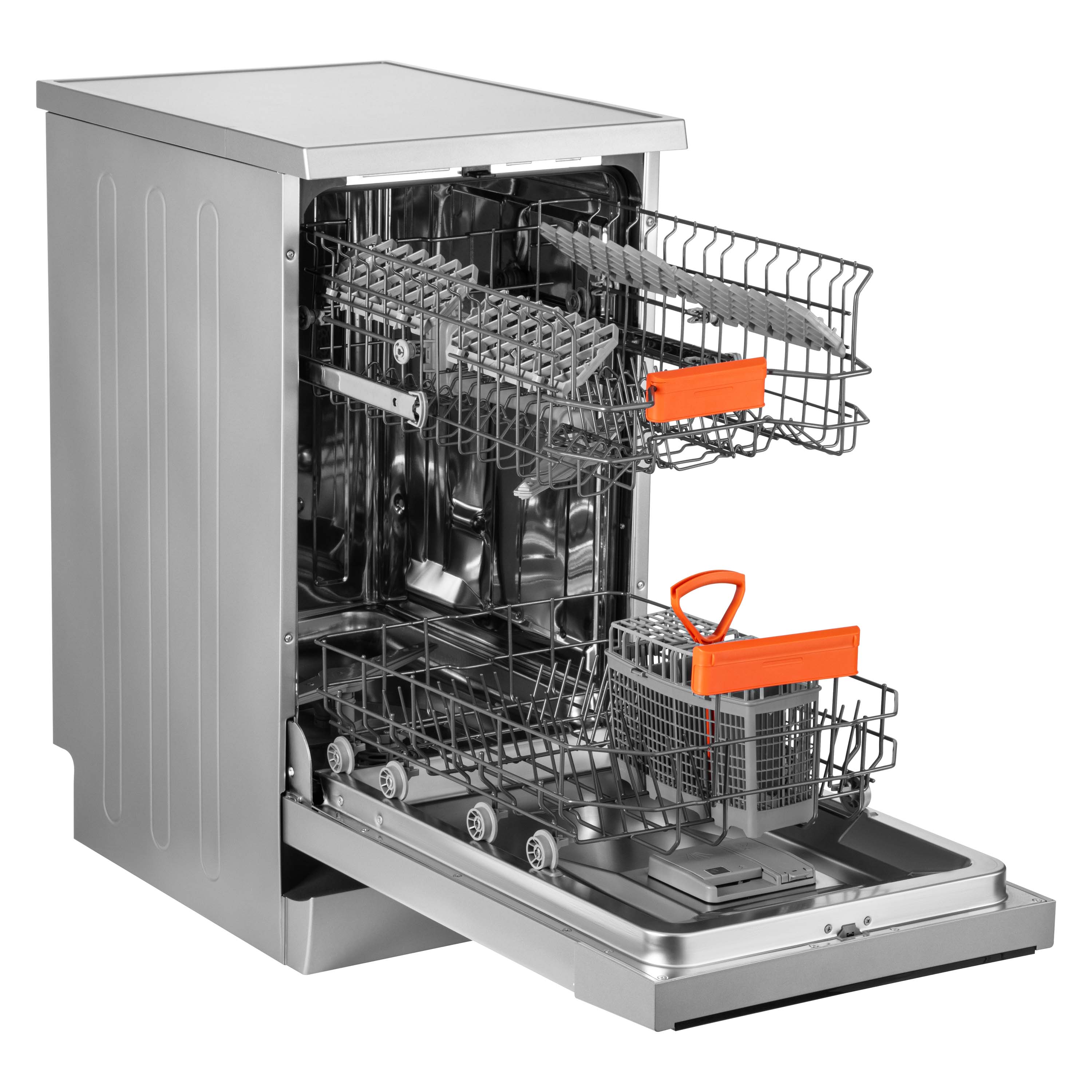 | Оснащение | корзина для столовых приборов, 4 полки для кружек, цельные раскладные полки в верхней и нижней корзине, регулируемая верхняя корзина |