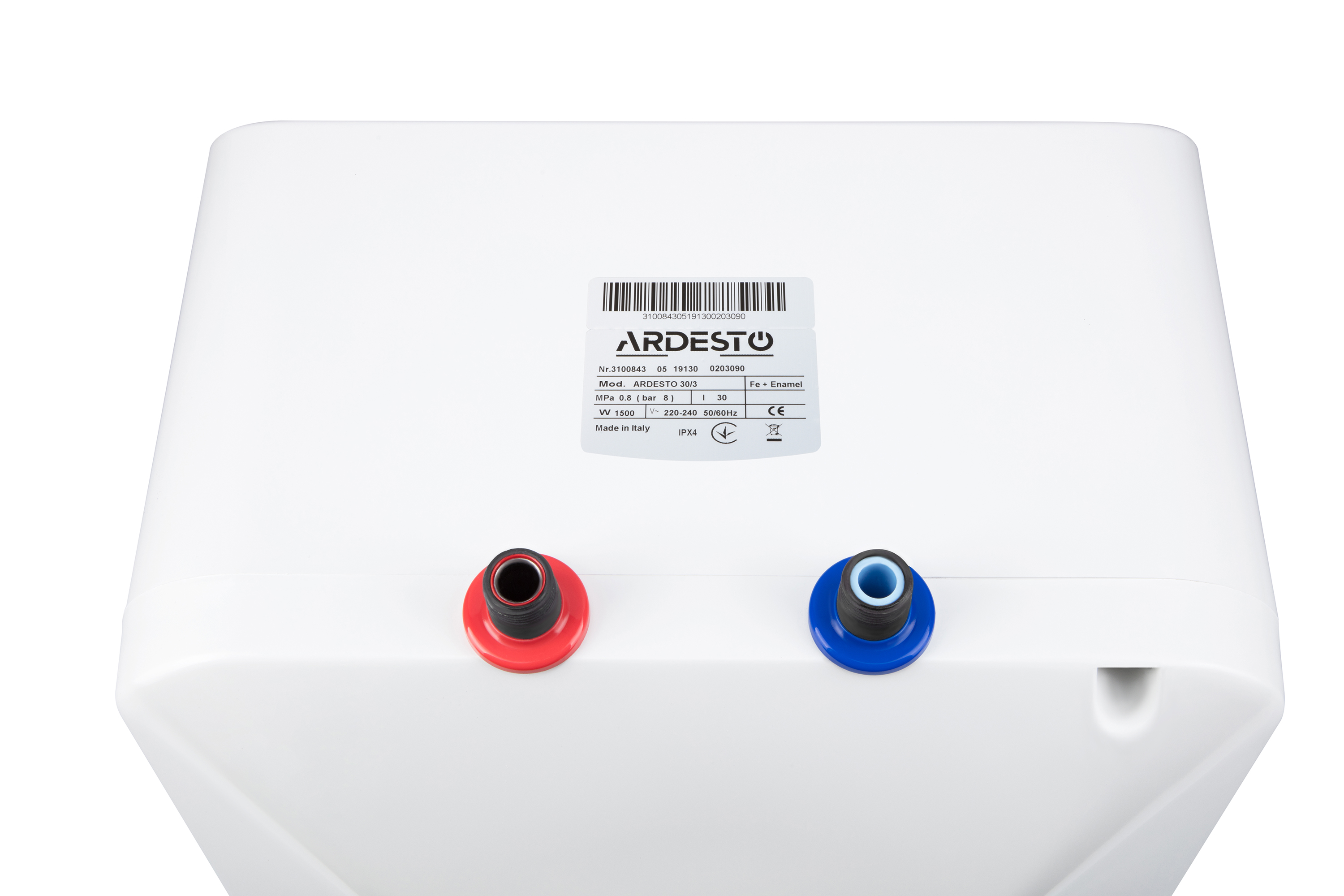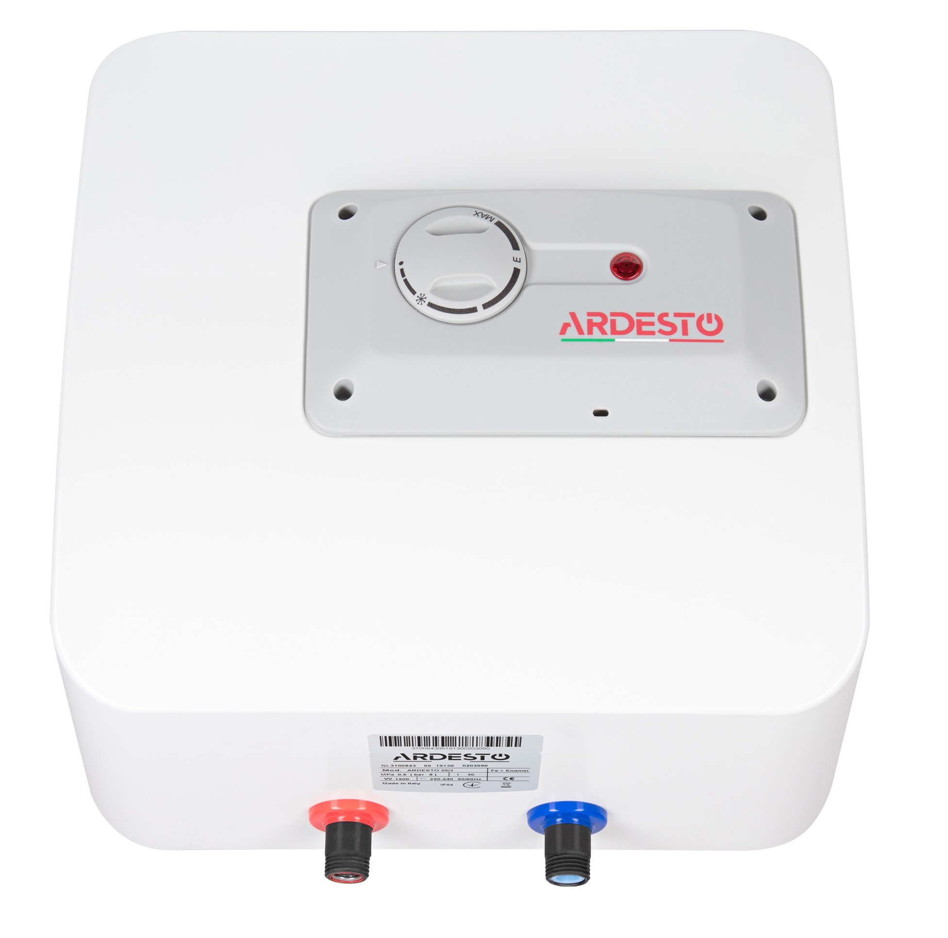 Накопительный электрический водонагреватель на 30 литров с мокрым ТЭНом и механическим управлением. Форм-фактор и нижнее подключение труб предусматривают установку над мойкой.