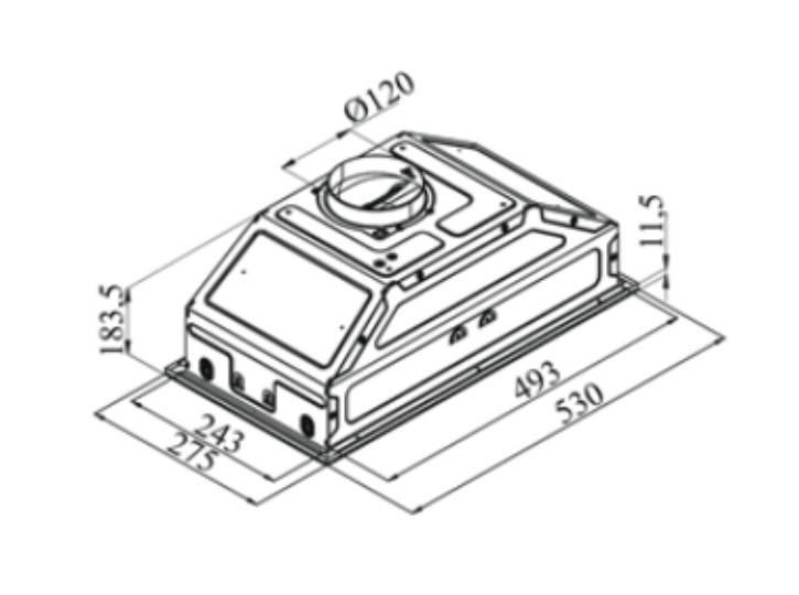 Двигатель мощностью 100 Вт обеспечивает производительность до 700 м3/ч. Управление просто и удобно – благодаря удобно расположенной кнопочной панели можно выбрать одну из трех скоростей и включать или выключать подсветку без лишних движений. Трехслойный алюминиевый фильтр эффективно улавливает жир, предотвращая оседание на кухонных поверхностях. Заслонка предотвращает обратный поток воздуха. Уровень шума при работе не превышает 63 дБ. Освещение обеспечивают две LED-лампы мощностью 1 Вт каждая, что гарантирует достаточную видимость рабочей зоны, даже при слабом основном освещении.
