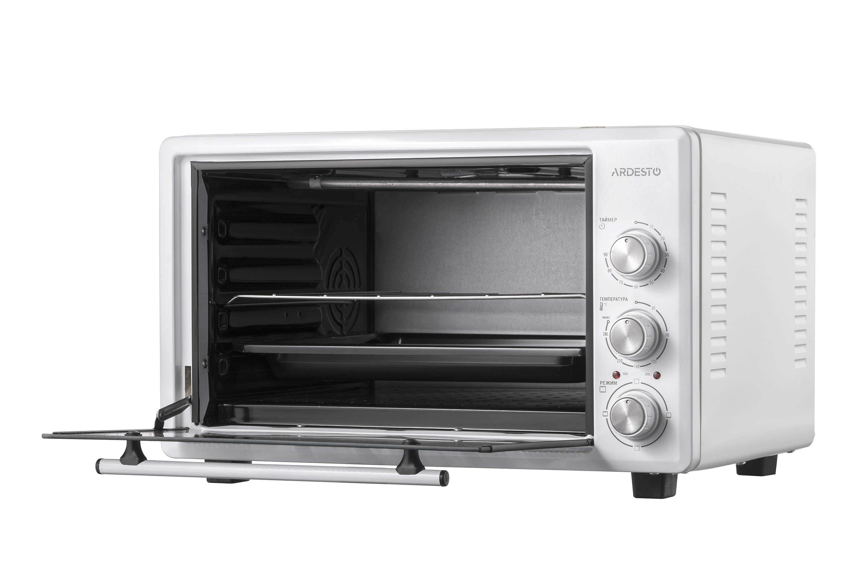 Учитывая компактные габариты (345×518×400 мм) электропечь будет занимать минимум места на кухонной поверхности, оставляя достаточно свободного рабочего пространства, поэтому модель является удачным выбором даже для маленьких кухонь. К тому же, она оснащена тремя режимами приготовления, режимом конвекции и таймером до 90 минут.
