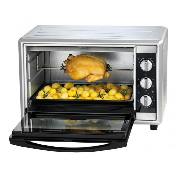 Электропечь ARIETE 986 Silver емкостью 45 л, с 6 режимами приготовления пищи, оснащенная управляемым таймером до 60 минут, переключателем температуры до 230° и функцией вентилирования во время комбинированной готовки пищи. Наличие механизма с вертелом и внутренней подсветкой, необходимой для контроля за процессом приготовления, делают этот электроприбор буквально незаменимым на кухне.