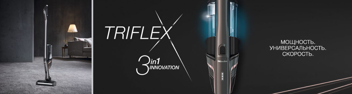Вертикальный пылесос Миле является универсальным помощником в уборке, так как в одном приборе Вы получаете три полноценных инструмента для достижения идеальных результатов чистоты в доме, автомобиле, на разных поверхностях. Конструкция пылесосов Miele Triflex позволяет с легкостью убирать труднодоступные участки – под мебелью, на шкафах, очищать потолки. Именно поэтому новинка обязательно порадует вас функциональностью и качеством сборки. В интернет магазине ТехноХата пылесос Miele Triflex представлен тремя моделями с различной комплектацией и их мы рассмотрим.
