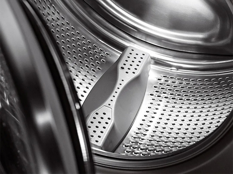 Стиральная машина оснащена 29 программами стирки, что позволяет выбрать оптимальный режим для разных тканей и степени загрязнения. Модель использует технологию Steel Seal, которая предполагает отсутствие традиционной резиновой манжеты дверцы. Это делает стирку более гигиенической, предотвращает накопление грязи и упрощает открывание люка. Для стабильной работы применена конструкция Quattro, в которой барабан поддерживается системой амортизаторов, передающих колебания на основание прибора и помогающих снизить вибрации во время работы. Такая конструкция обеспечивает тихую и стабильную работу машины даже при высоких оборотах отжима.