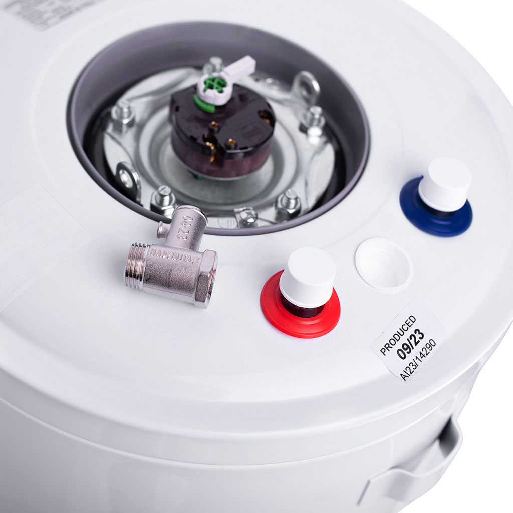 В конструкции предусмотрено механическое управление, позволяющее удобно контролировать процесс нагрева. Бойлер оснащен нагревательным элементом с открытым мокрым типом под крышкой для удобства эксплуатации и безопасности. Благодаря такому типу ТЭНа, бойлер способен работать на длительный период, обеспечивая стойкость к коррозии.