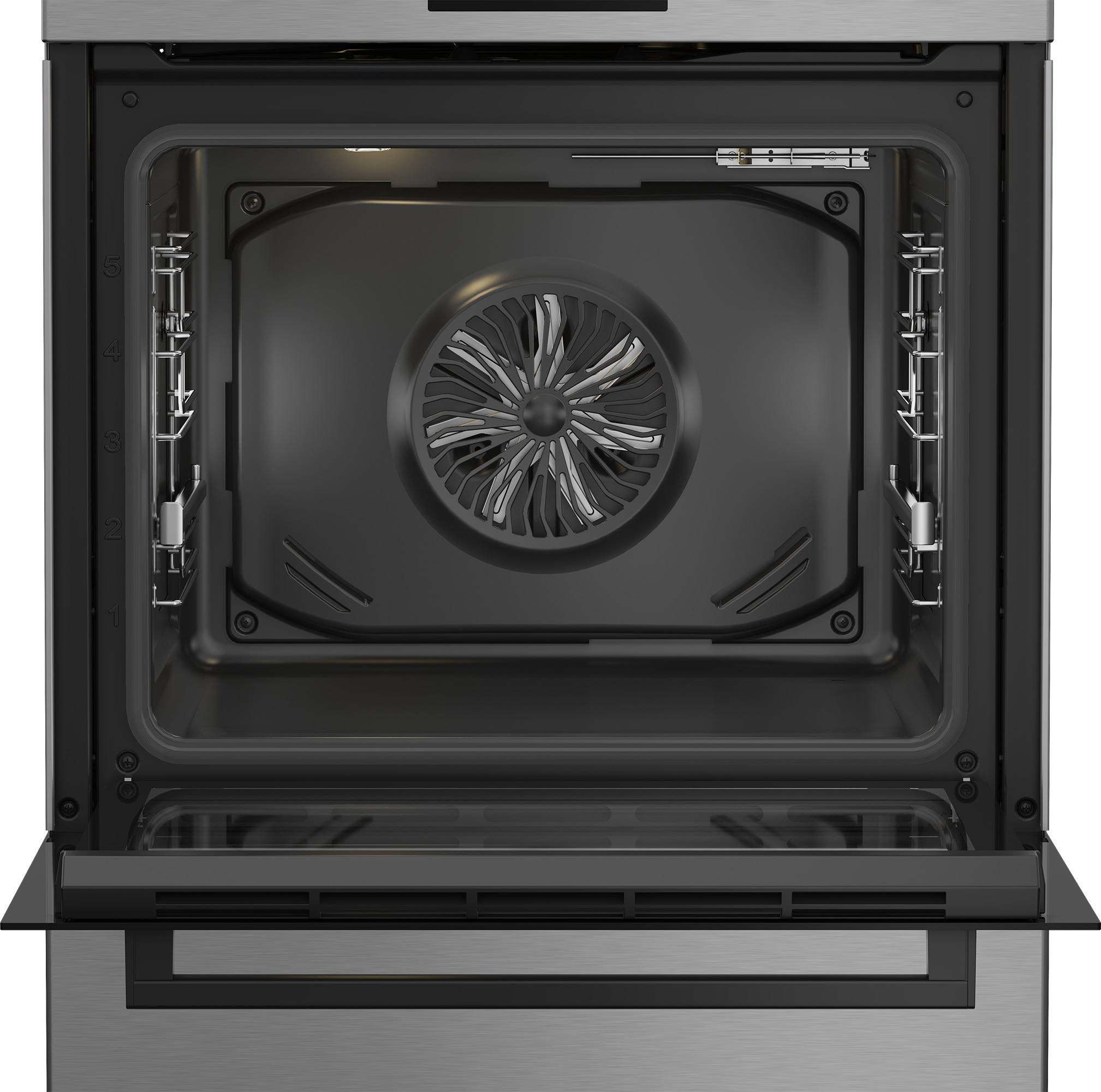Телескопические направляющие гарантируют безопасную и удобную выемку подноса с горячей посудой, что позволяет избежать случайных ожогов.