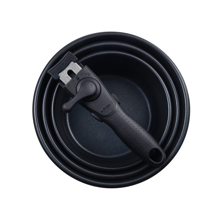 Этот набор пригодится для разных задач: приготовление соусов в маленьком ковшике, основных блюд – в среднем, и варка бульонов или супов – в большом. Благодаря съемной ручке легко мыть, удобно хранить и использовать в духовке или на плите без дополнительных деталей.