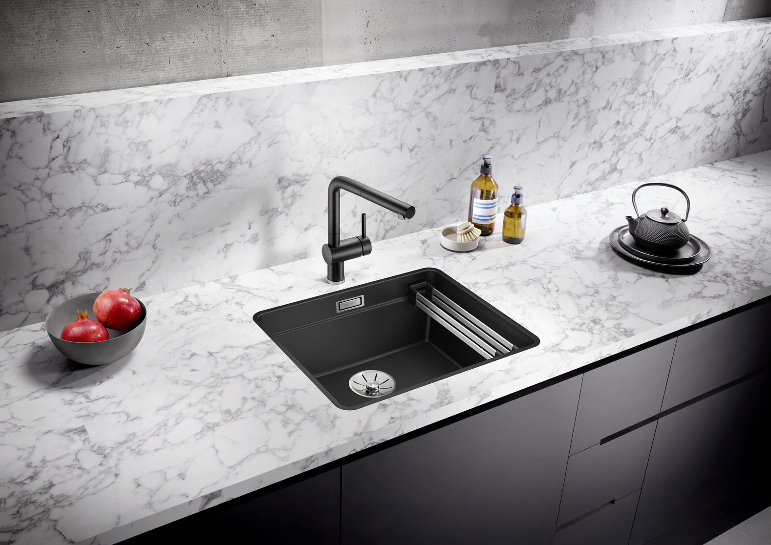 Продуманная концепция системы с универсальными направляющими ETAGON. При толщине столешницы 15 мм и более на нижней стороне необходимо вырезать место для перелива.