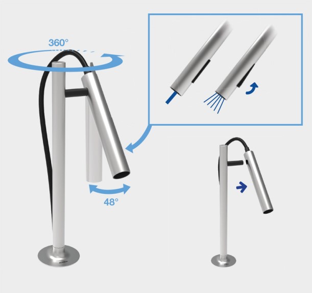 Двойная душевая лейка плавно крепится с помощью магнита и дополняется гибким шлангом в оплетке, обеспечивающим удобство использования и неограниченную свободу действий, поскольку шланг имеет длину 47 см.