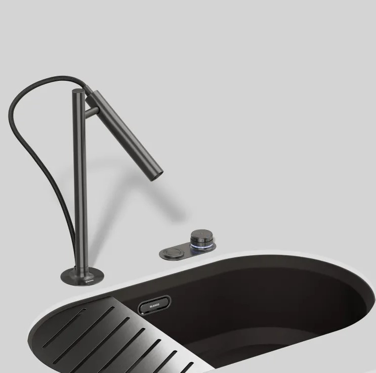 Панель управления можно гибко расположить, например, для левшей или правшей, за мойкой, рядом с ней или перед ней, а также установить ее на передней панели шкафа.