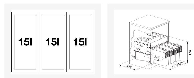 | Дополнительно | 3 секции по 15 л, выдвижная система для переднего крепления |
