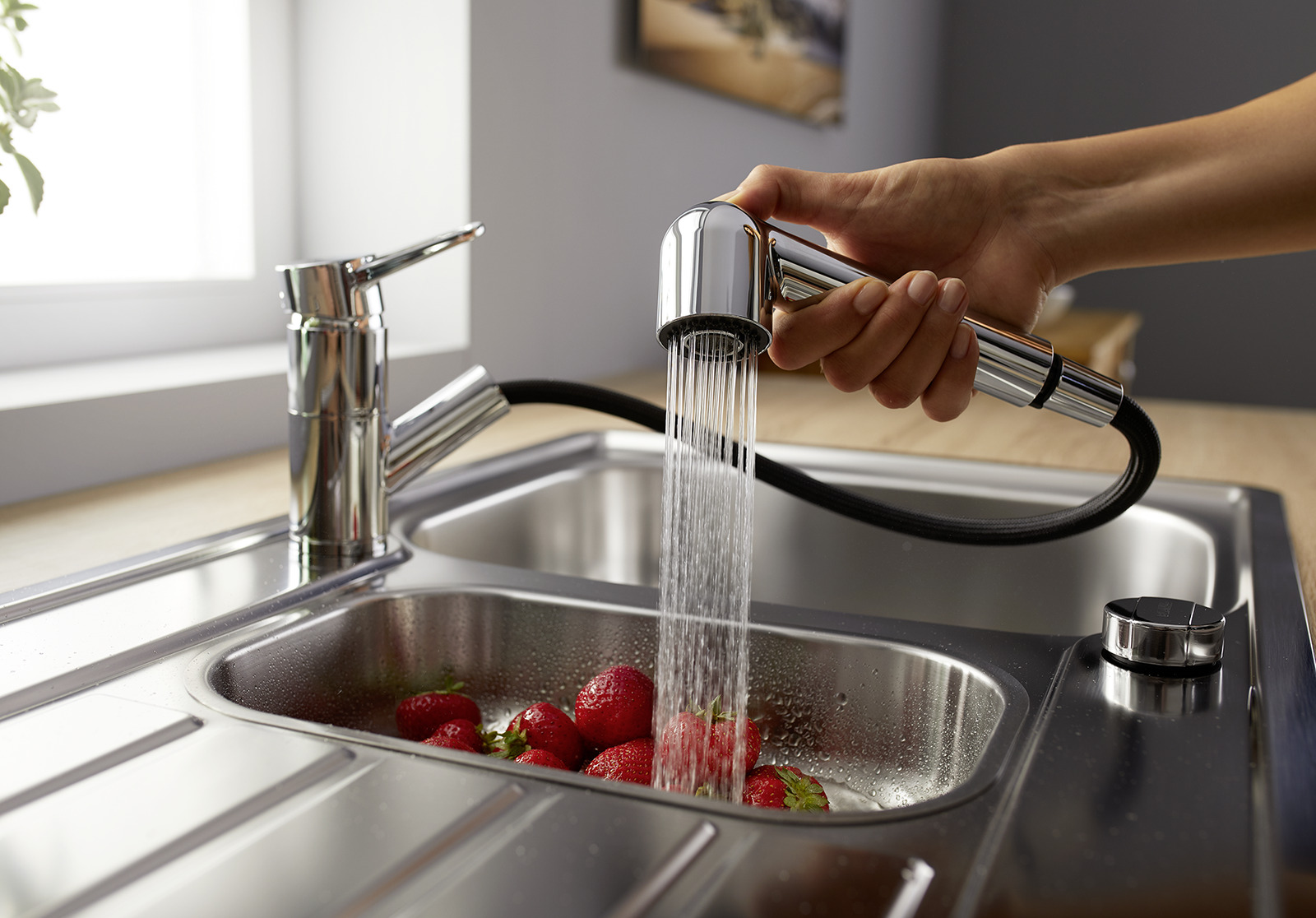 Модели WEGA - S II предлагают смесители с выдвижным двойным распылителем, позволяющим легко переключаться между аэрированной струей и мощным душем для ополаскивания.