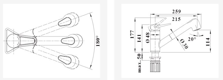 | Особенности | Угол поворота излива 180 градусов. Керамический дисковый картридж. Шланг выдвижного излива в нейлоновой оплетке |