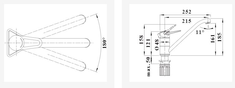 | Особенности | Угол поворота излива 180 градусов. Керамический дисковый картридж. Легкое и безопасное подключение гибкими шлангами длиной 550 мм с гайкой ⅜'' |