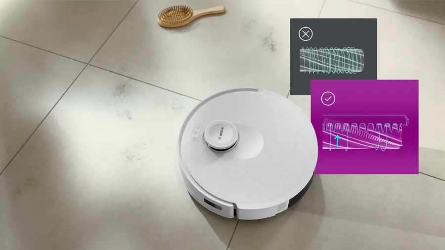 Bosch BCRC1W – робот-пылесос с функцией влажной уборки для безупречной чистоты вашего дома. Bosch BCRC1W – это современный робот-пылесос, предназначенный для ежедневной комплексной уборки без лишних усилий. Он сочетает в себе мощную сухую и влажную уборку, позволяя одновременно устранять пыль, грязь, волосы и пятна на разных типах поверхностей. Эта модель станет незаменимым помощником в вашем доме для поддержания идеального порядка – от ламината или плитки до низкого ворса ковров.