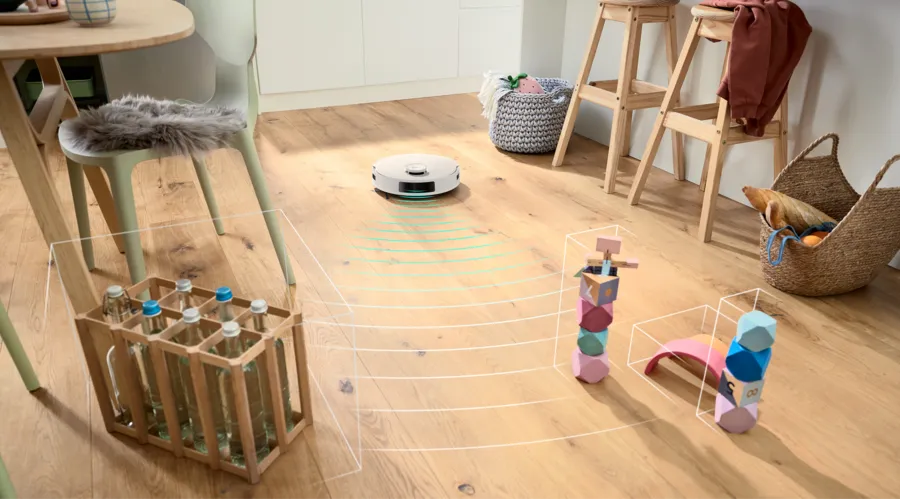 | Особенности | 1.5 л станция сухой очистки, 220 мл резервуара для воды, функция уменьшения запутывания, возможность голосового контроля, Home Connect, инфракрасная система, лазерная навигация, режимы мощности: Эко, Тихий, Турбо |