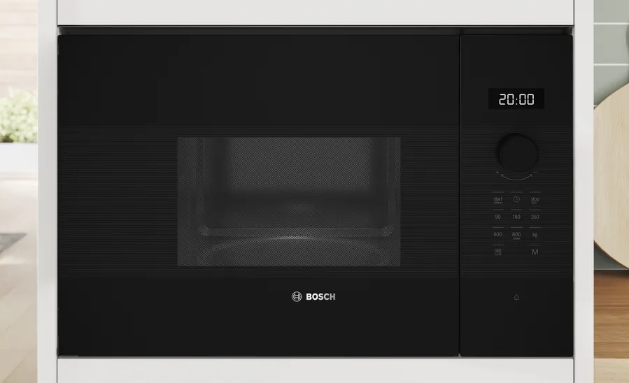 Встраиваемая микроволновая печь Bosch BFL524MB2 – компактное и стильное решение для современной кухни. Модель выполнена с черным фасадом со стеклянной дверцей, легко интегрирующейся в кухонную стенку или модульные корпуса. Техническая база включает в себя объем камеры 20 л и максимум 800 Вт мощности (микроволны) — достаточно, чтобы быстро разогреть блюдо или воспользоваться набором автоматических программ. Управление устройством реализовано через сенсорную панель с дополнительным регулятором, в комплекте есть функция размораживания/автопрограммы. Для встраивания предусмотрено монтажное пространство и стандарты производителя – инструкция содержит важные указания по безопасности, подключению и обслуживанию.