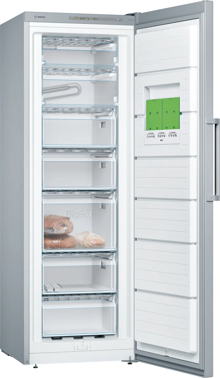Много места для продуктов размера XXL. В морозильной камере, кроме стандартных контейнеров, Вы найдете просторный контейнер BigBox, в который без труда поместятся крупногабаритные продукты. Предупреждающий сигнал со звуком или светом, когда дверца не закрыта или возникает другая ошибка.