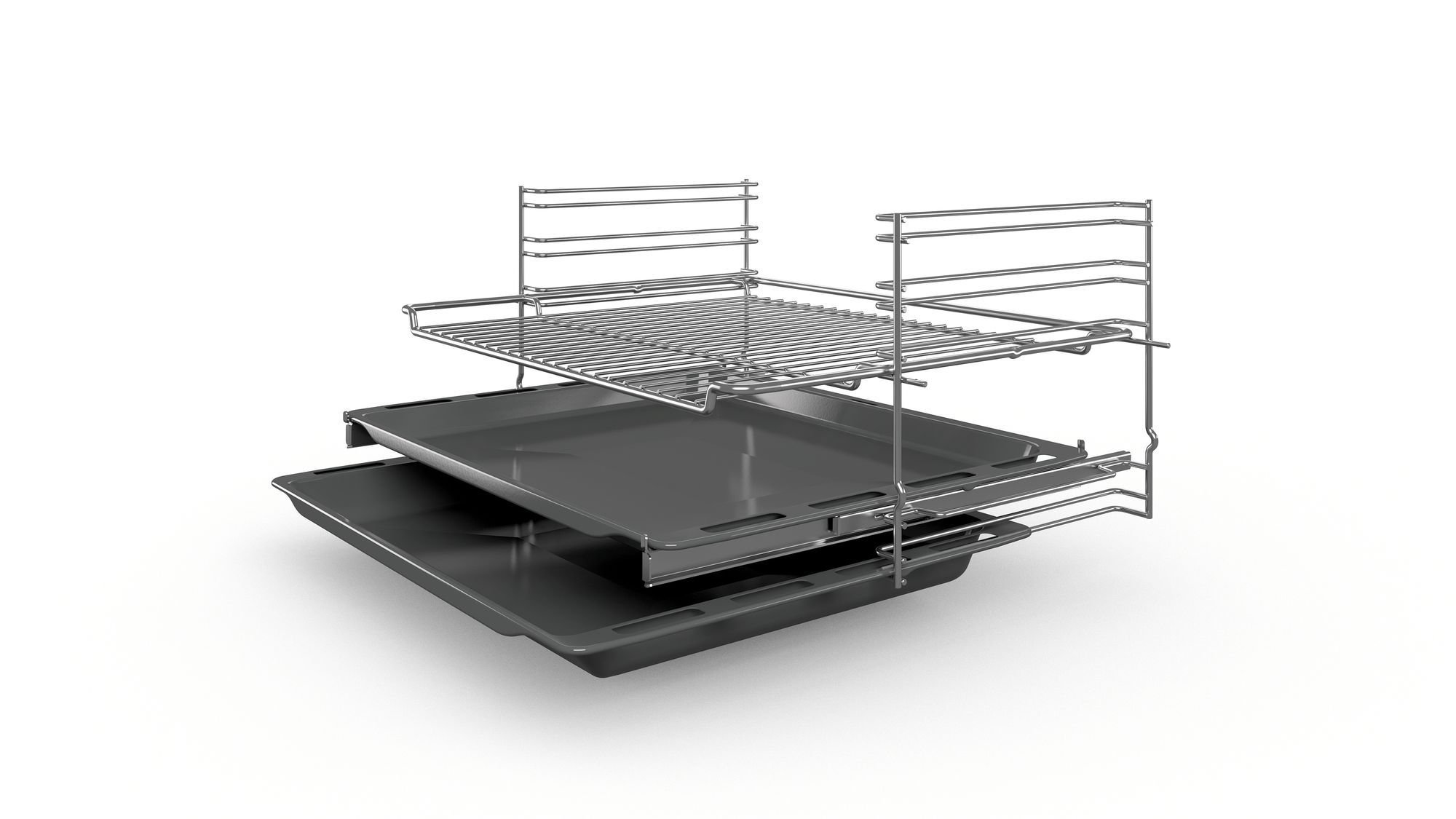 Телескопические системы выдвижения противней обеспечивают удобный и безопасный доступ к блюдам на нужном уровне.