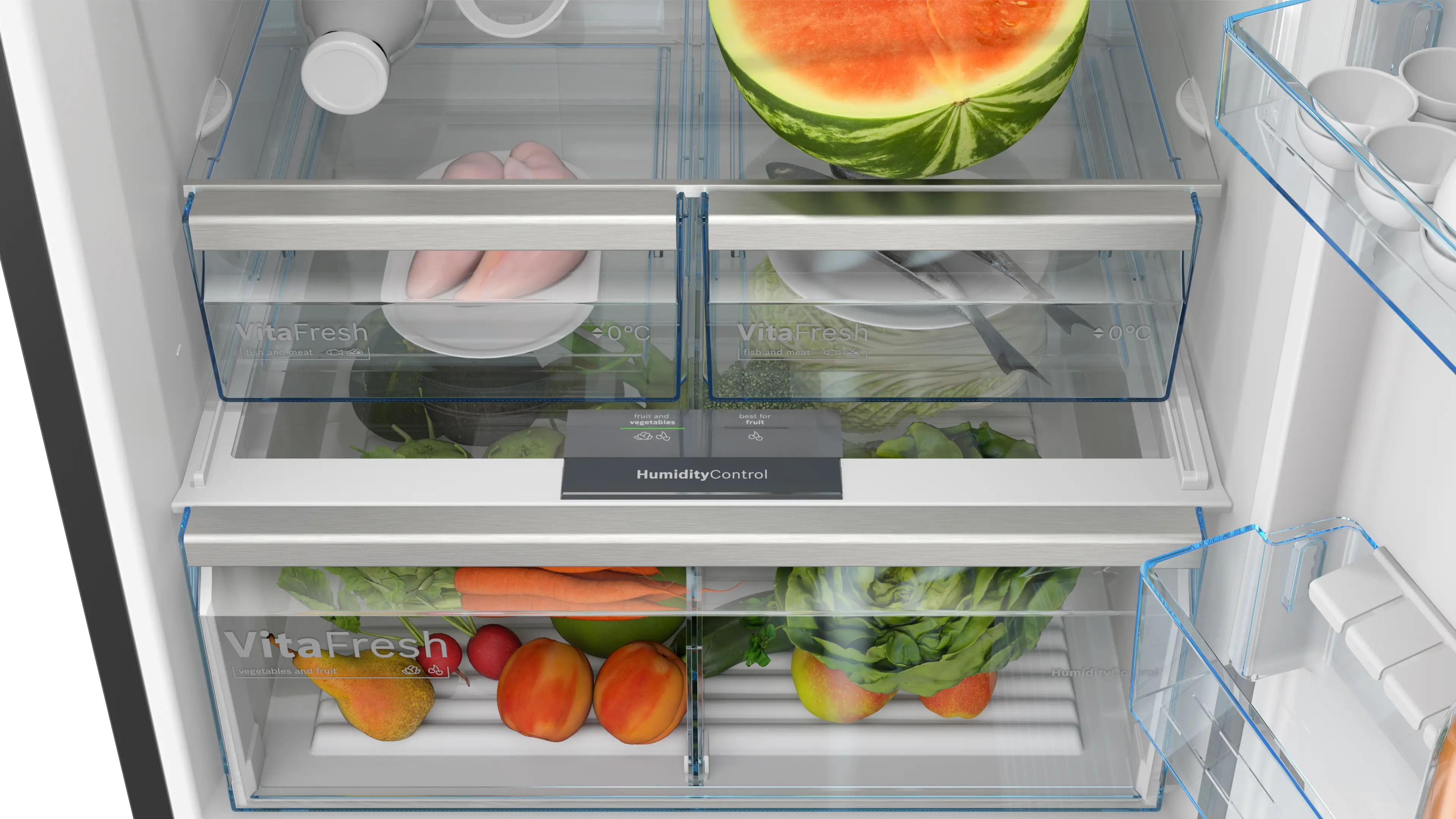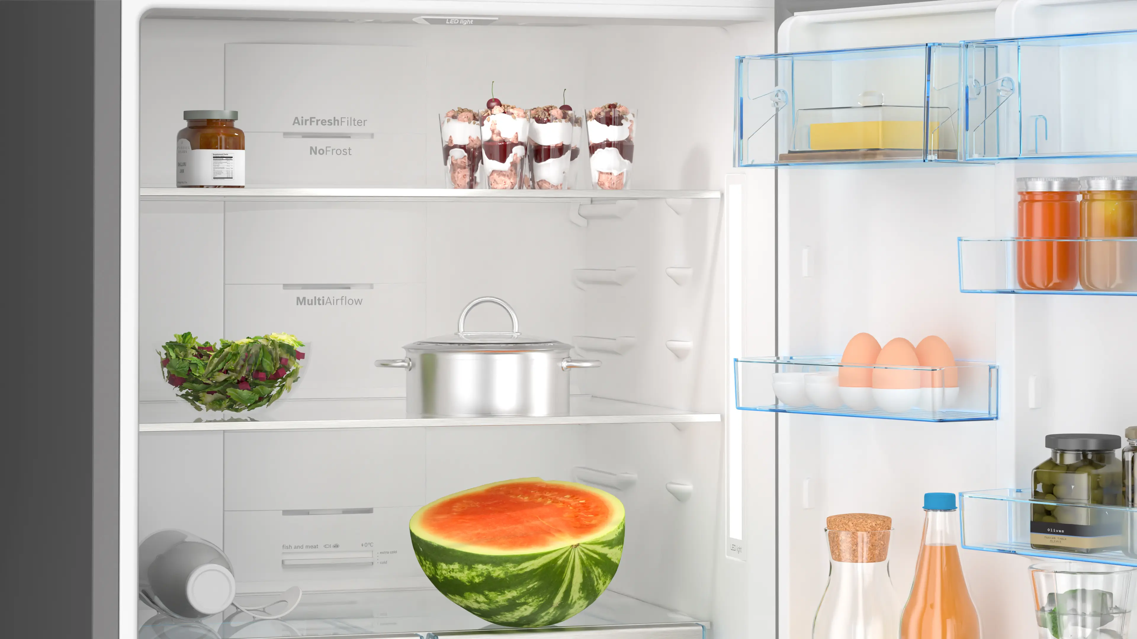 Bosch KGN76CXE0N – это сбалансированное решение для семейного использования, сочетающее большой объем хранения, технологии для длительного хранения продуктов и стильный дизайн, идеально подходящее для современного кухонного пространства.