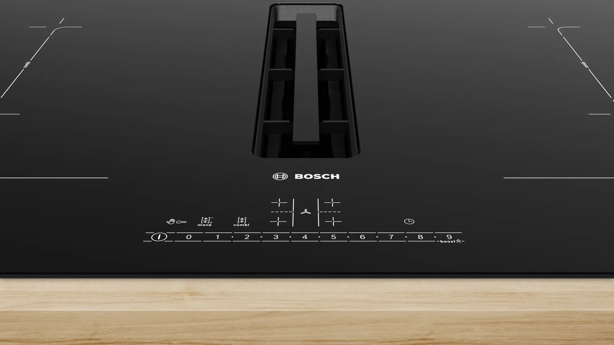 • CombiZone: объединение двух зон индукционной поверхности при приготовлении пищи в больших кастрюлях.