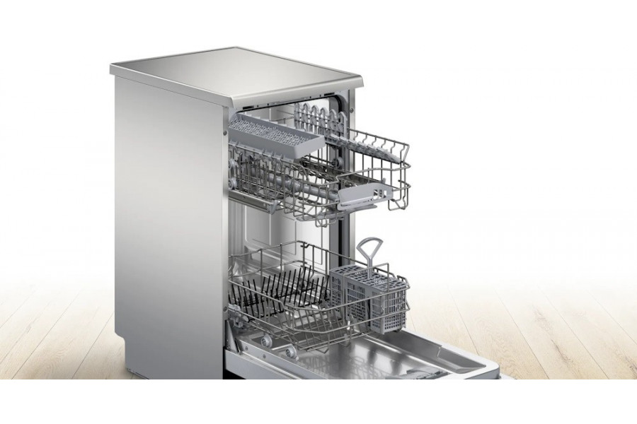 Bosch SPS2HKI42E – это узкая бытовая посудомоечная машина серии Series 2 от Bosch, предназначенная для ежедневного мытья посуды в кухнях с ограниченным пространством, где важны компактность, надежность и экономное использование ресурсов. Эта модель имеет емкость 10 комплектов посуды, что делает ее идеальной для семьи из 2-3 человек или как дополнительное решение в квартире или дачном доме. Модель выполнена в корпусе из стали с компактными габаритами, что позволяет удобно разместить ее в нишу шириной 45 см или как отдельно стоящую.