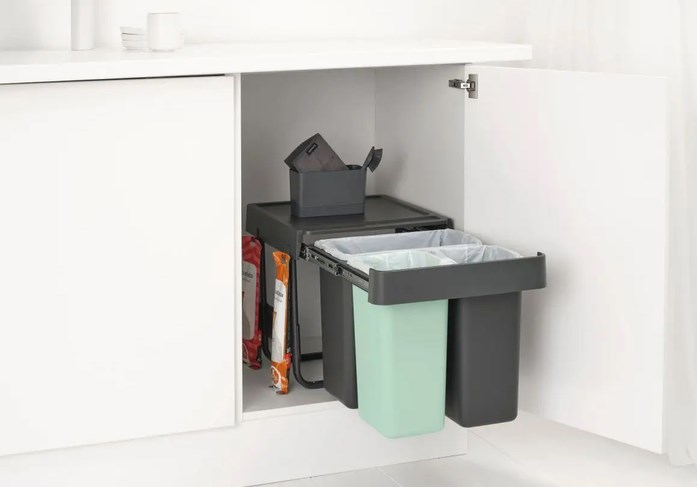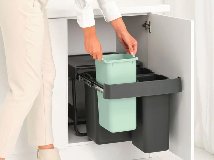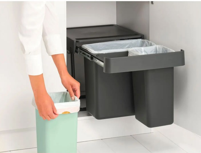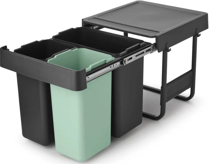 Увеличьте мощность разделения мусора втрое, не теряя площади, благодаря встроенному контейнеру Brabantia Sort & Go 10 + 10 + 20 литров. Сделан так, чтобы прятаться в шкафу, с легко устанавливаемой монтажной рамой (самонесущая, поэтому дверца не провисает!). Эти незаметные урны поместятся в большинство кухонных шкафов, независимо от того, дверца открывается слева или справа. Они даже имеют место хранения сверху и крючки сбоку для дополнительной организации. С длинным телескопическим рельсом, чтобы вы могли вытащить их одной рукой. И, конечно, их легко чистить, доставать и опорожнять.