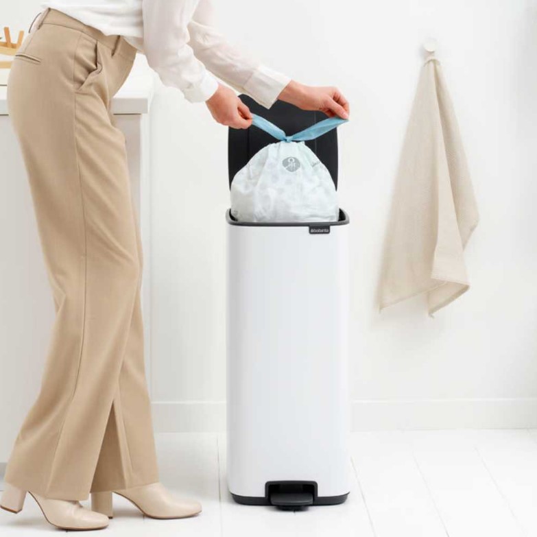 Бак для мусора Brabantia Bo Pedal Bin – элегантность большого формата. Brabantia Bo Pedal Bin – это премиальный мусорный бак, созданный для современных кухонь, где важны емкость, тишина и безупречный дизайн. Узкая прямоугольная форма позволяет разместить его вплотную к стене или в углу, экономя пространство без компромиссов в удобстве. Крышка с мягким закрыванием работает плавно и бесшумно, открывается гигиенической педалью или вручную. Функция Оставайся открытым значительно упрощает замену пакета и уборку. Съемное внутреннее ведро из переработанного пластика легко мыть, а большое отверстие предотвращает мусор. Благодаря интегрированной транспортной ручке контейнер удобно переносить, а нескользящая основа защищает пол от царапин и обеспечивает стабильность.