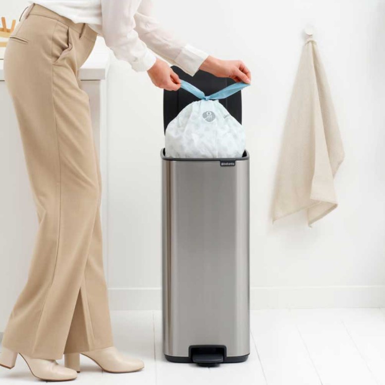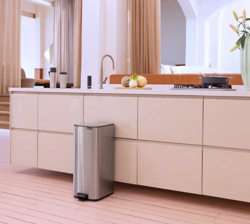 Brabantia Bo Pedal Bin – это премиальный мусорный бак, созданный для современных кухонь, где важны емкость, тишина и безупречный дизайн. Узкая прямоугольная форма позволяет разместить его вплотную к стене или в углу, экономя пространство без компромиссов в удобстве. Крышка с мягким закрыванием работает плавно и бесшумно, открывается гигиенической педалью или вручную. Функция Оставайся открытым значительно упрощает замену пакета и уборку. Съемное внутреннее ведро из переработанного пластика легко мыть, а большое отверстие предотвращает мусор. Благодаря интегрированной транспортной ручке контейнер удобно переносить, а нескользящая основа защищает пол от царапин и обеспечивает стабильность.