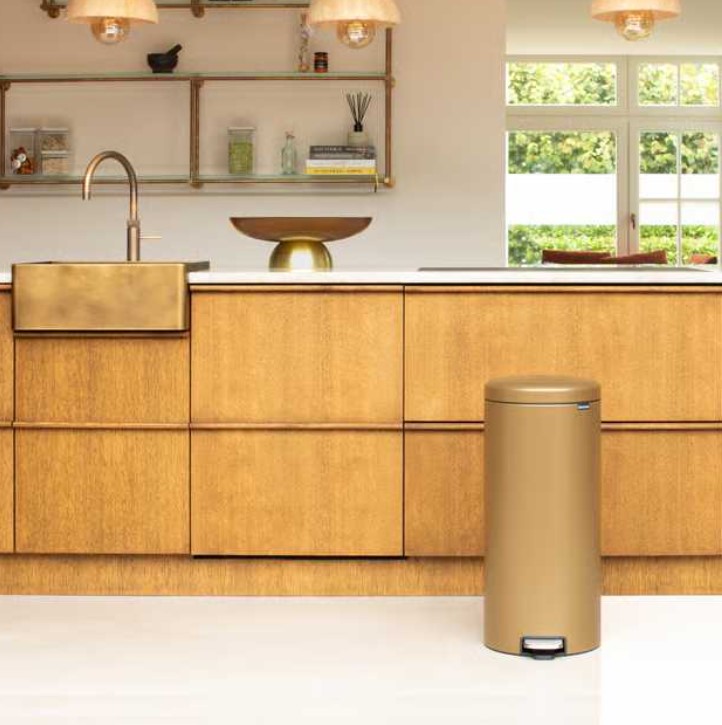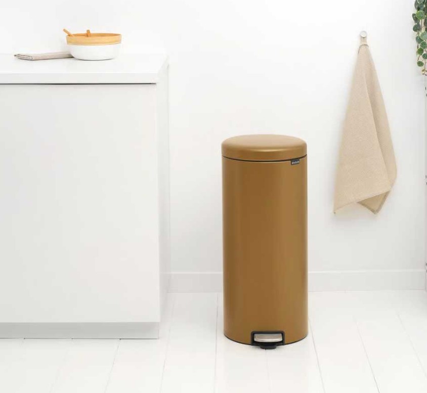Бак для мусора Brabantia NewIcon Pedal Bin – элегантная классика с характером. Brabantia NewIcon Pedal Bin в латунном исполнении – это сочетание иконического дизайна, премиальных материалов и безупречной функциональности. Теплое металлическое покрытие с благородным блеском и педаль из нержавеющей стали придают интерьеру чувство сдержанной роскоши и статуса. Контейнер открывается легко и гигиенически посредством педали, а система Soft Close обеспечивает плавное, бесшумное закрытие крышки. Плотное прилегание эффективно удерживает запахи внутри, сохраняя свежесть в помещении. Внутреннее съемное ведро с вентиляционными отверстиями легко вынимается и очищается без эффекта вакуума. NewIcon надежно стоит на полу благодаря нескользящему основанию и встроенному блоку против наклона, а шарнирная ручка позволяет удобно перемещать контейнер.