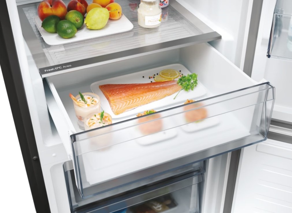 Благодаря зоне свежести 0C вы можете регулировать температуру ящика в соответствии с вашими потребностями: режим 0 градусов идеально подходит для рыбы и мяса; при необходимости эту функцию можно выключить и использовать зону с температурой холодильного отделения.