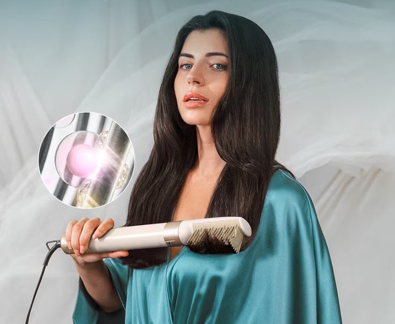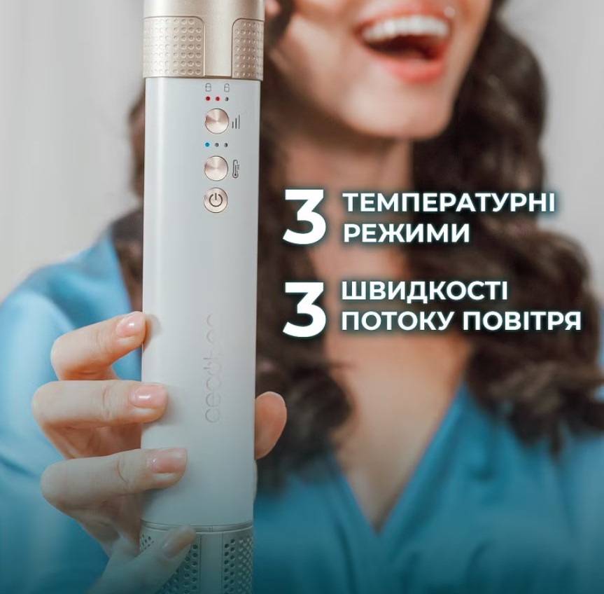 CECOTEC Bamba Ceramic Care 10in1 AirGlam Champagne (CCTC-00246) – это универсальный мультистайлер премиального уровня, сочетающий функции фена, плойки и брошинга в одном устройстве. Модель создана для быстрой ежедневной укладки с максимальной защитой волос, позволяя легко изменять образ без использования нескольких инструментов. Благодаря мощному бесщеточному двигателю со скоростью до 110 000 об/мин стайлер создает сильный воздушный поток, что значительно сокращает время сушки и укладки даже густых волос. Технология Coanda автоматически притягивает пряди к насадке, формируя локоны без перегрева – это дает естественный результат и минимизирует повреждение структуры волос.