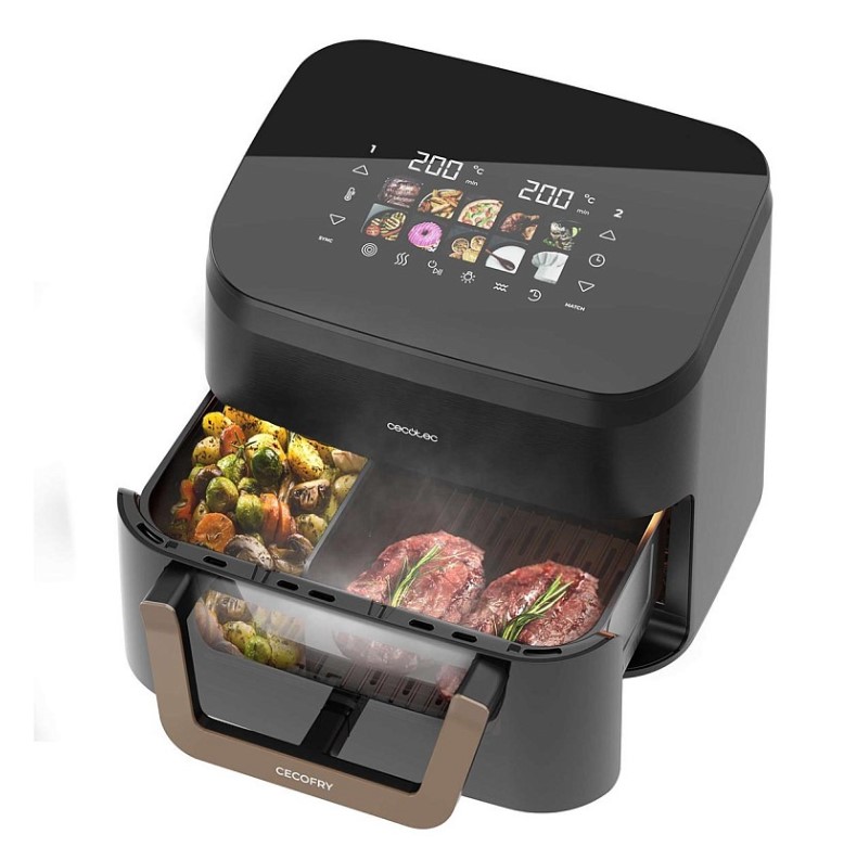 Готовьте мясо на гриле с помощью Grillin Style и получайте любимое мясо идеальной прожарки. Мощность 2900 Вт позволяет готовить блюда с одной столовой ложкой масла, значительно уменьшая количество жира в ваших блюдах без ущерба для вкуса или текстуры. Фритюрница позволяет вам следить за ходом приготовления, не открывая корзину, через смотровое окно. Выберите на экране меню, которое лучше всего подходит для вашего рецепта. Cecofry автоматически устанавливает время и температуру. Отрегулируйте температуру и полностью контролируйте процесс приготовления выбранного вами блюда благодаря индивидуальным настройкам.