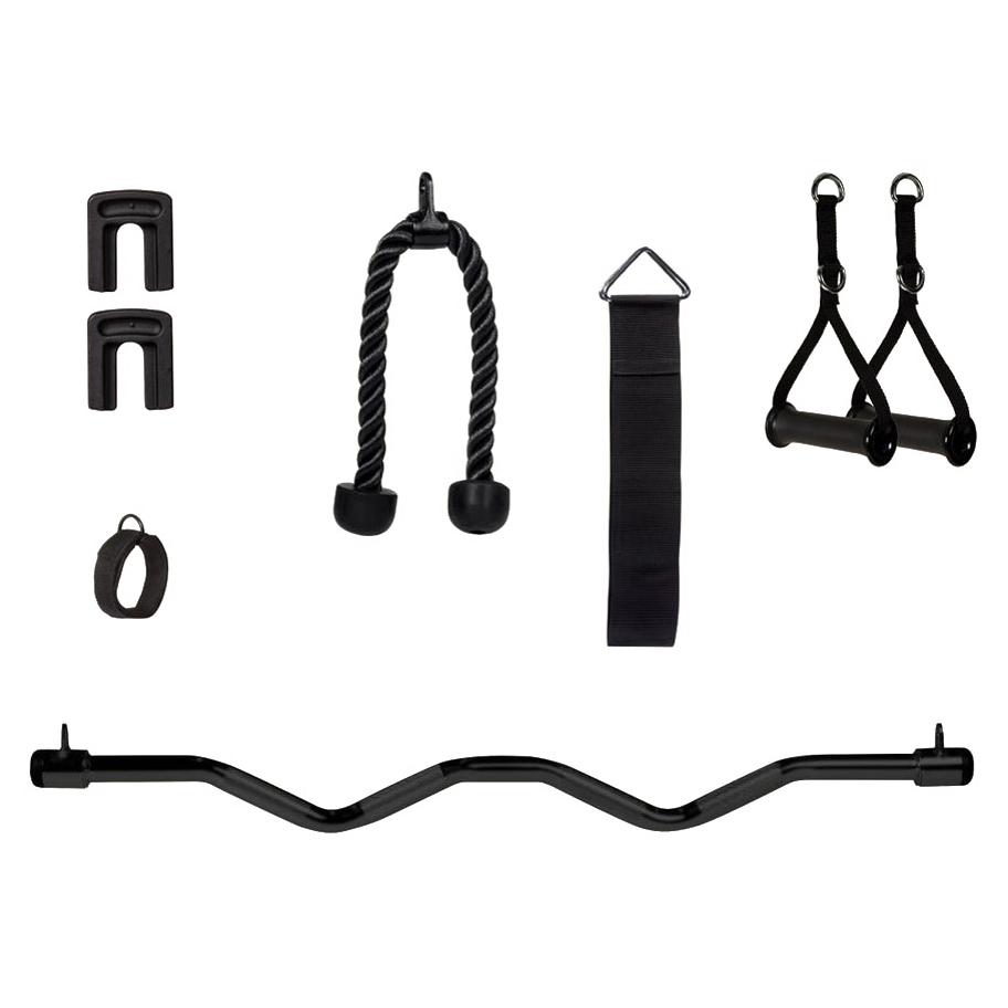 | Особенности | нагрузка регулируется, регулируемые тяговые блоки имеют 30 разных уровней высоты, сверхпрочная стальная конструкция рамы, комплектуется ручками, грифом, канатом для трицепса, универсальным ремнем |