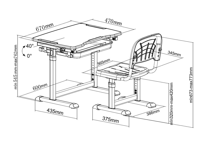 | Наклон столешницы | 0-40° |