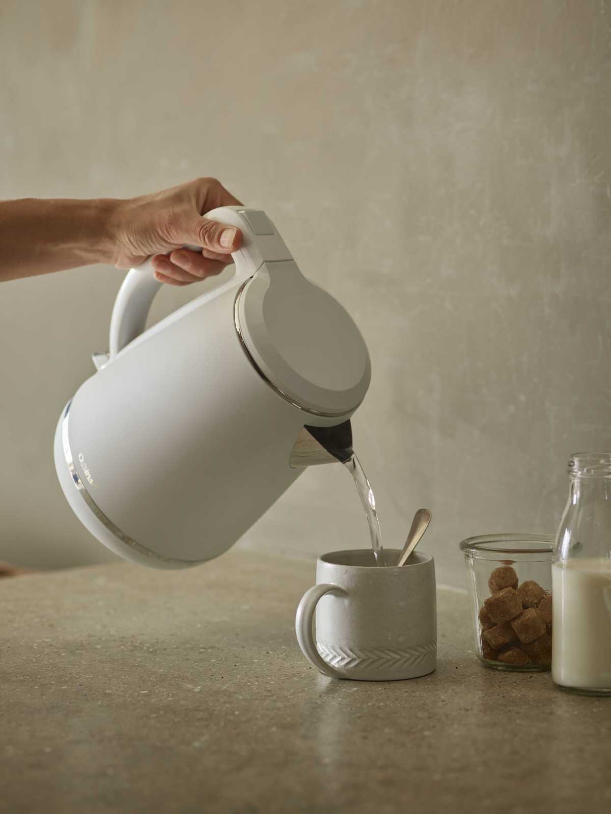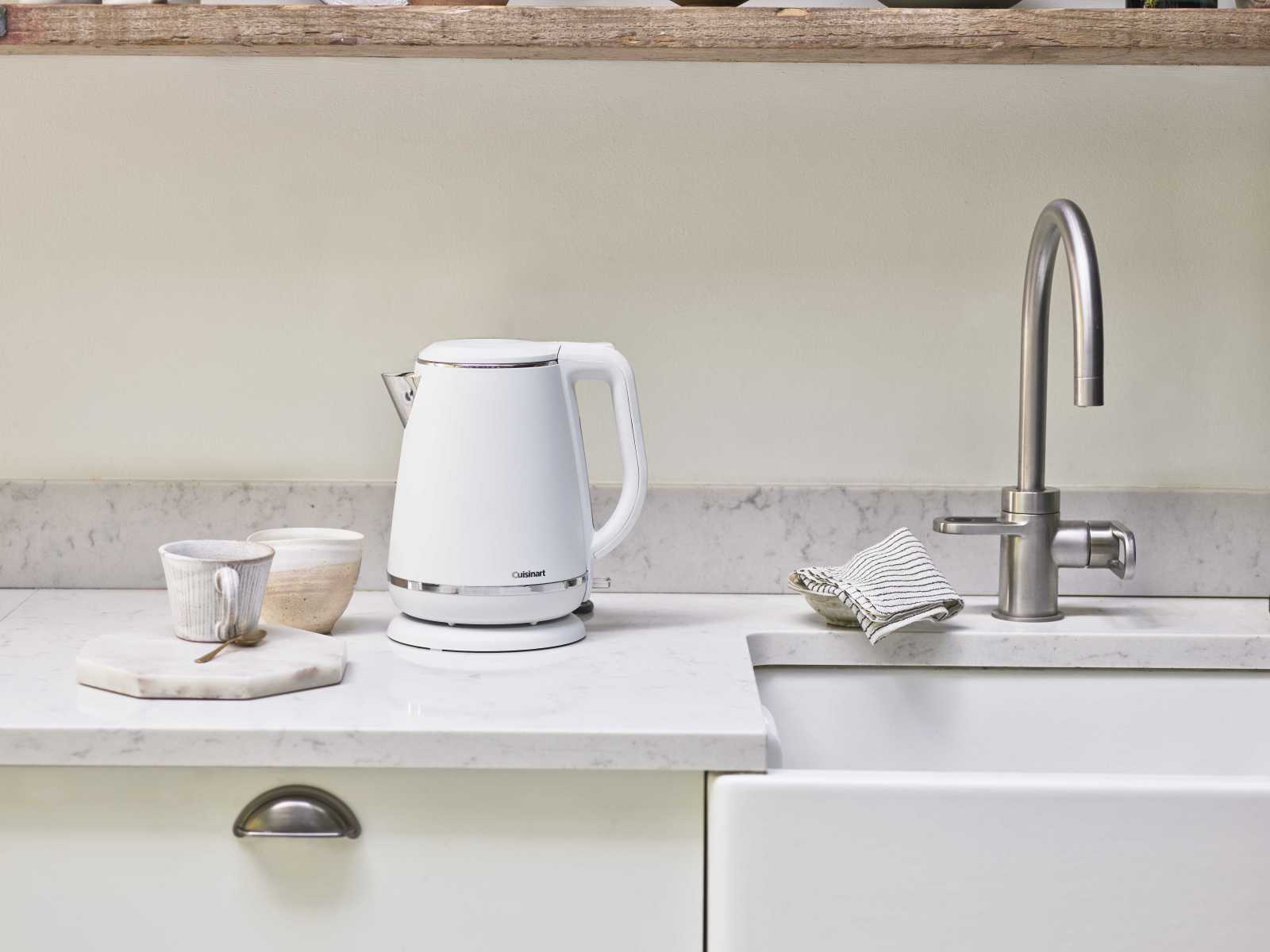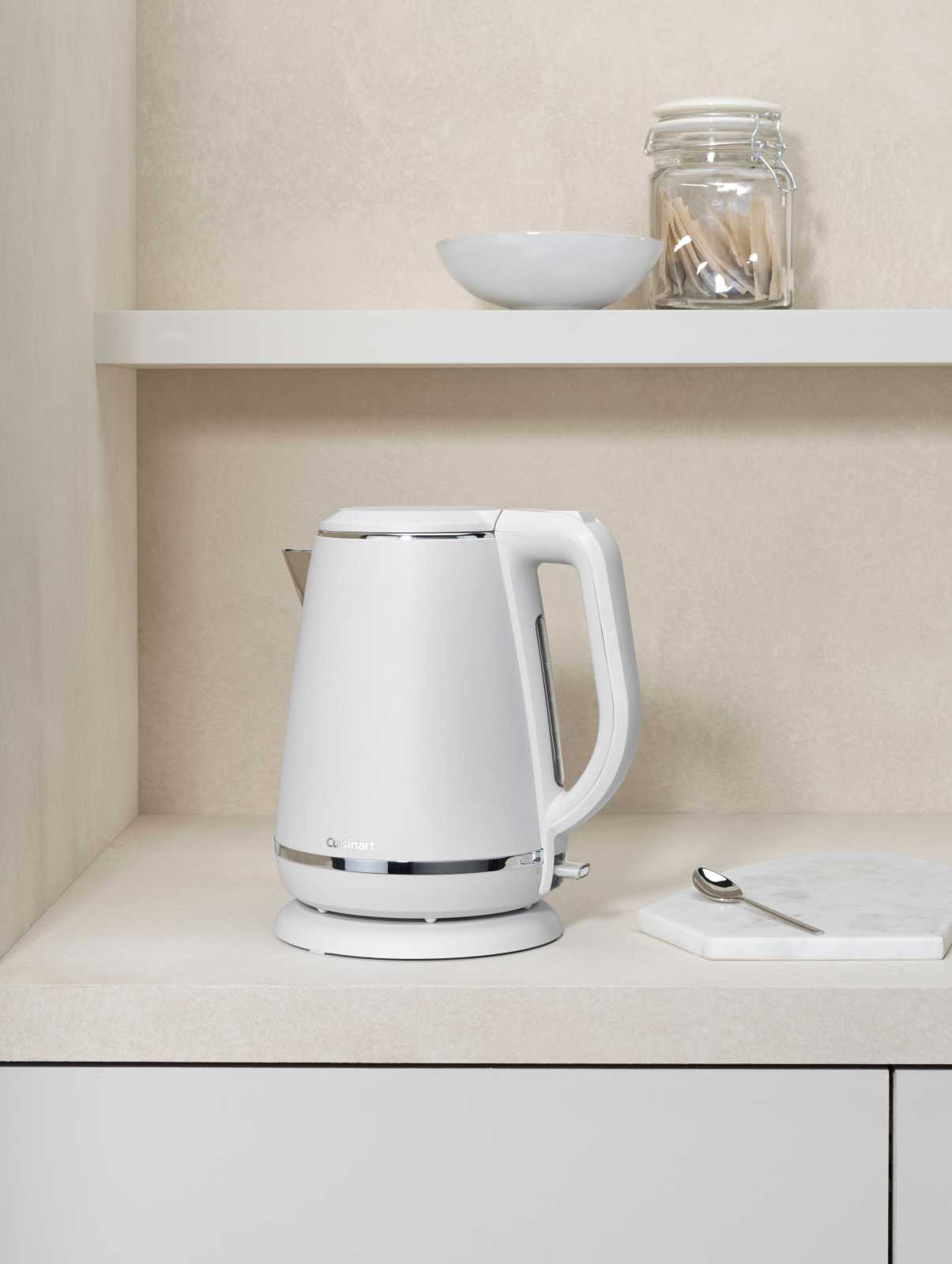 Электрочайник Cuisinart CJK780WE – стильное решение для кухни, сочетающее современный дизайн и практичность. Матовое покрытие корпуса с полированными деталями придает ему премиальный вид и впишется в любой интерьер. Модель создана с акцентом на скорость и удобство: корпус изготовлен так, чтобы минимизировать брызги при наливании, а вращающаяся подставка на 360 градусов позволяет удобно работать пользователям с любой рукой. Встроенный фильтр от накипи и внутреннее покрытие из нержавеющей стали подчеркивают внимание к качеству и долговечности.