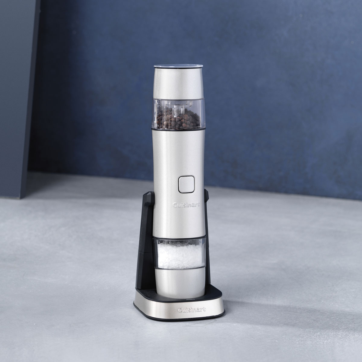 Предусмотрен держатель, на котором саму электрическую мельницу удобно размещать, и который при этом выступает еще и в роли подставки, — устройство всегда заряжено и готово к работе. Регулировка степени помола позволяет перейти от мелкого к более крупному помолу и подстроить выход под конкретное блюдо или вкус. Имеет два съемных резервуара: позволяют наполнить солью и перцем или другими специями; удобно переключать режим через наклон/нажим – одна ручка-кнопка.