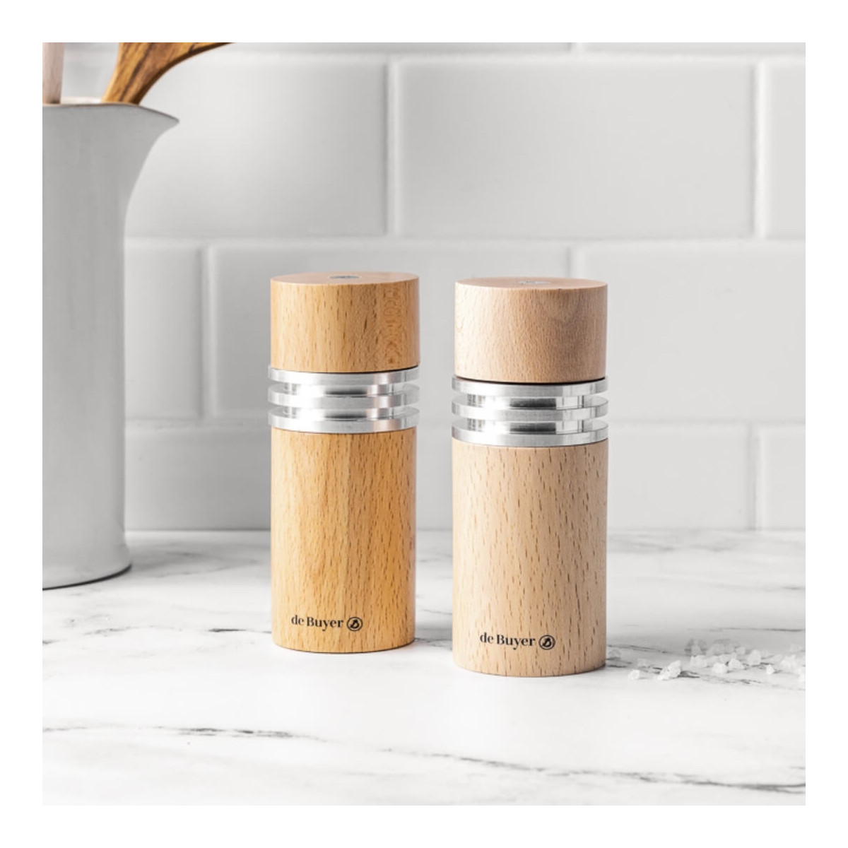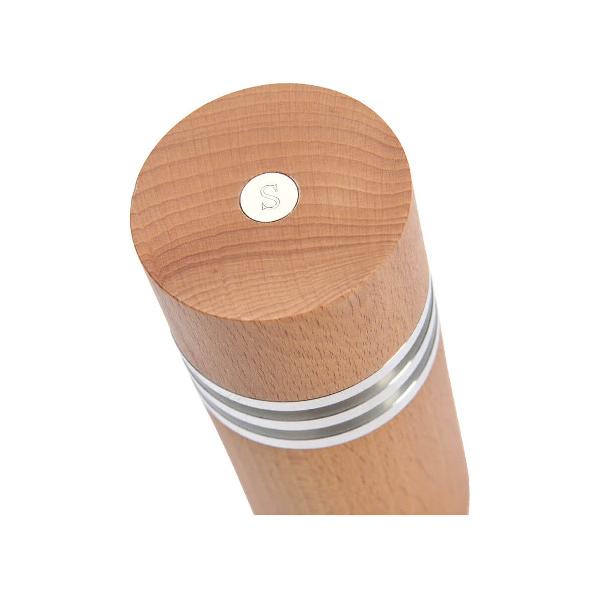Цилиндрическая мельница с элегантным дизайном, рифленым алюминиевым кольцом и изящной кнопкой, встроенной в крышку. Механизм из нержавеющей стали 18/10. Регулируемый помол Сделано во Франции