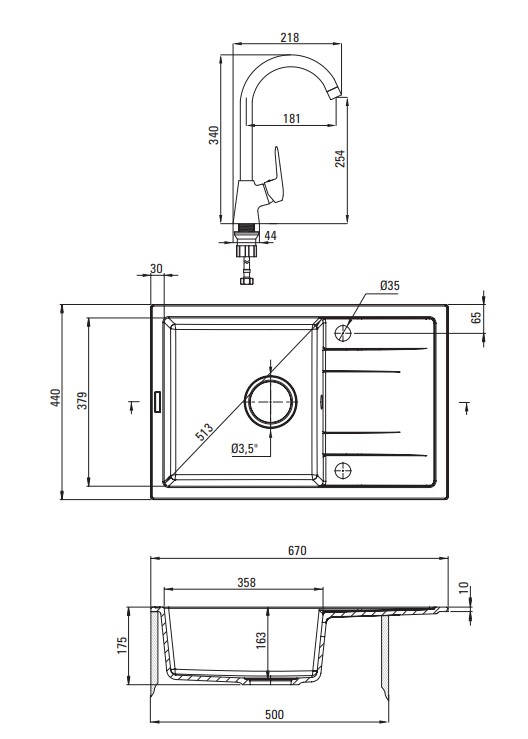 | Комплектация | мойка, кухонный смеситель, дозатор, крепеж, гарантийный талон |