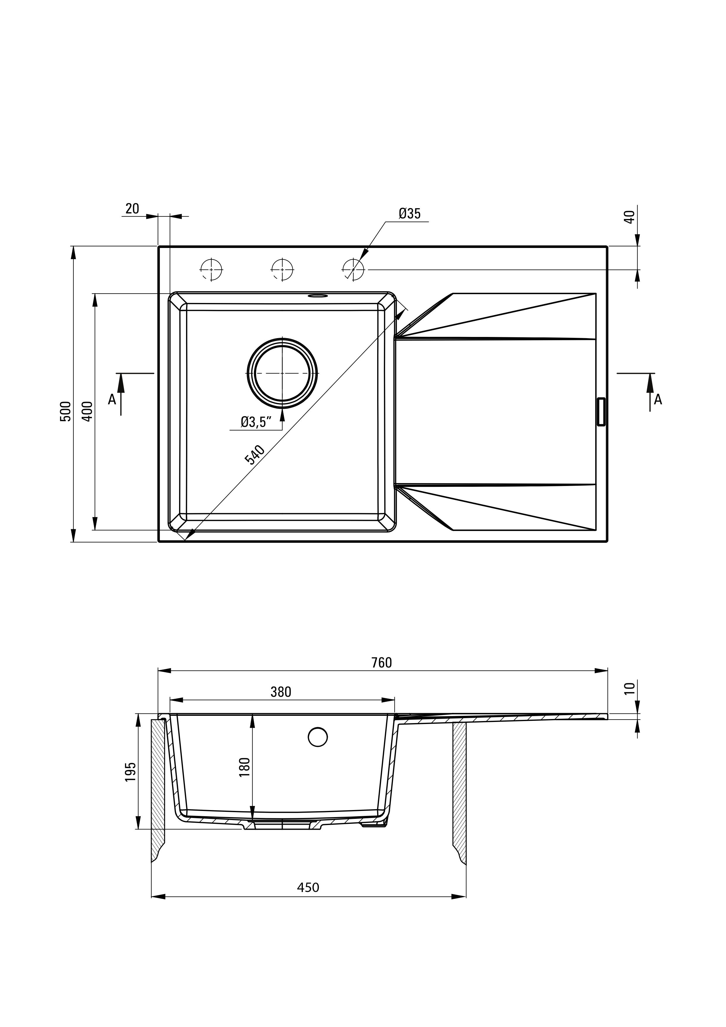Особенностью этой модели является наличие крыла, расположенного справа от чаши. Оно служит дополнительной рабочей зоной – удобно ставить горячие кастрюли, сушить посуду, овощи или фрукты, откладывать мясо или рыбу во время приготовления, не загрязняя рабочую поверхность кухни. Такое решение повышает эргономику пространства и минимизирует беспорядок вокруг мойки.